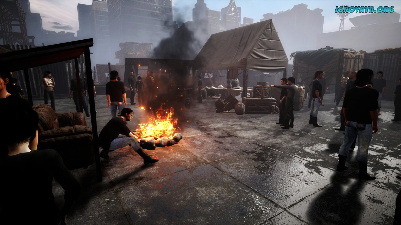 Интересный и местами необычный игровой процесс открывает перед игроками массу возможностей. Ключевой особенностью Univers 11: Under the Sky стало то, что по сути вам предстоит сооружать постройки и не только из подручных средств. Ищите способ перебраться на соседнее здание и совершайте вылазку на нижние этажи в попытках отыскать пропитание и ценные ресурсы. Будьте готовы к тому, что все запасы генерируются случайным образом из-за чего вы с первых же дней в силах столкнуться с нехваткой определенных товаров.