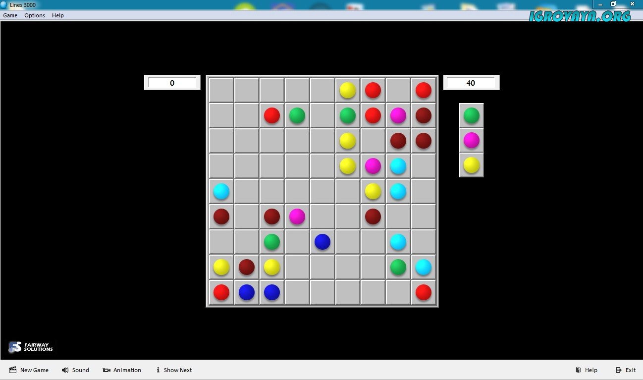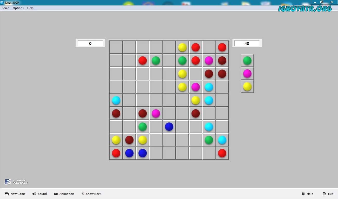 Условия кажутся простыми: вам необходимо собрать линию по горизонтали, вертикали или диагонали из шариков одного цвета. Дело в том, что с каждым шагом в Lines 3000 случайная ячейка на поле заполняется новой сферой из-за чего становится труднее ориентироваться.