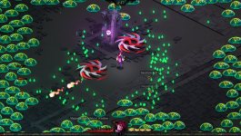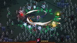 Главная фишка — система бонусов от богов, которая напоминает Hades, но с куда большим размахом. Зевс дарует молнии, Морок окутывает врагов тьмой, а богиня удачи может как осыпать золотом, так и подкинуть «сюрприз». Каждый забег превращается в эксперимент: собрать ли набор молний, превращающих экран в электрический стул, или сделать ставку на призываемых драконов? А ещё тут есть лут как в Diablo — мечи, кольца, амулеты с рандомными статами, которые можно комбинировать с умениями для создания абсолютно безумных билдов.