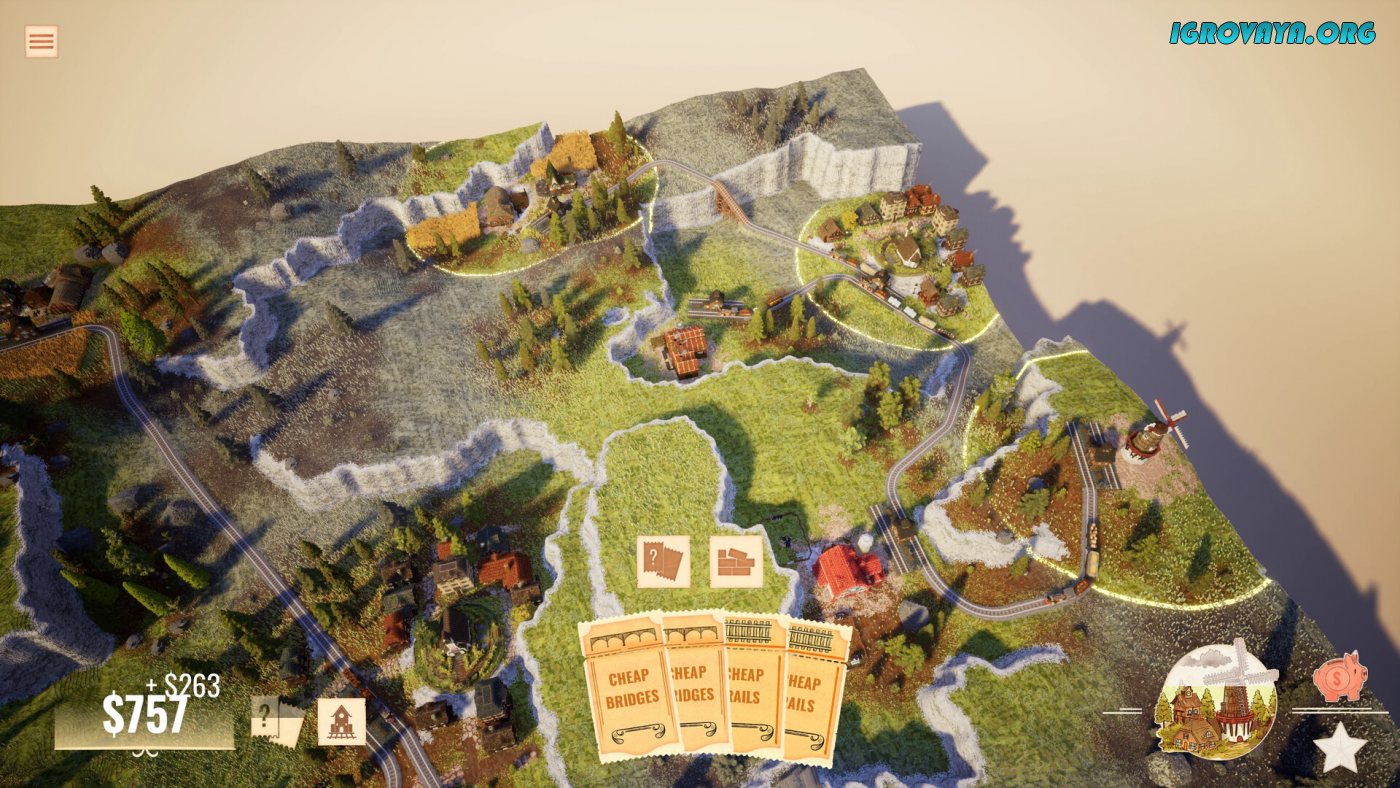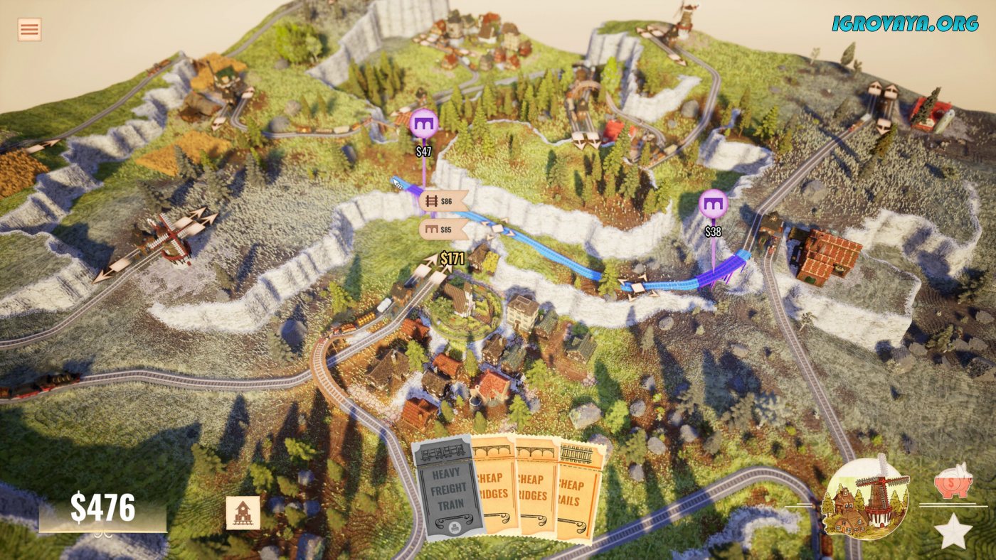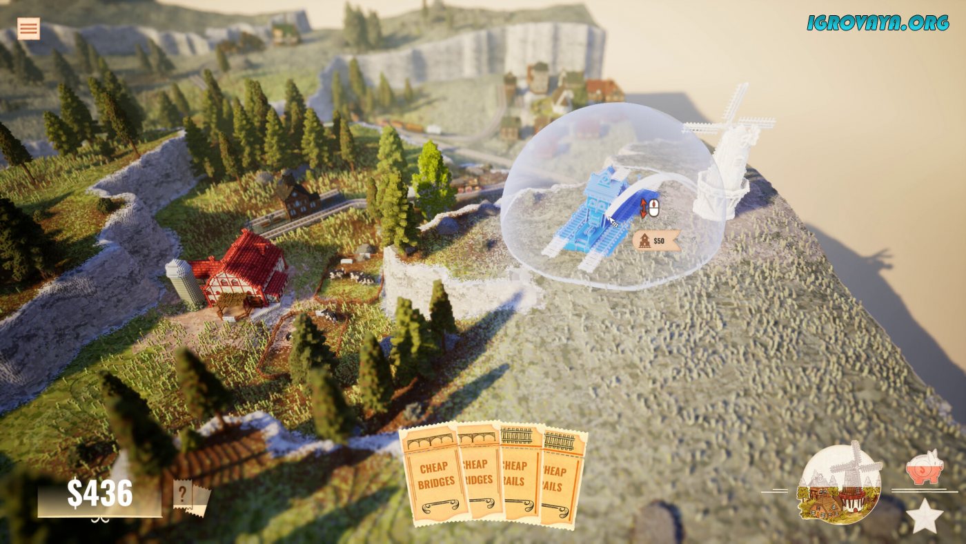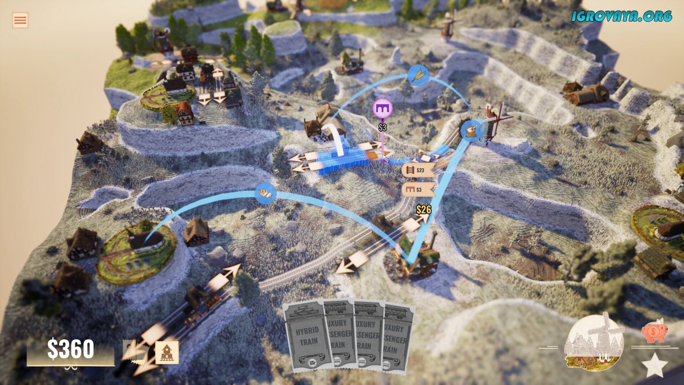 Station to Station — это уютный паззл-симулятор, где вы проектируете железнодорожные сети среди живописных воксельных пейзажей. Игровой процесс напоминает медитативную головоломку: нужно соединять станции между фермами, фабриками и городами, чтобы ресурсы превращались в готовые товары. Например, чтобы доставить хлеб в город, придётся проложить маршрут от пшеничного поля к мельнице, затем к пекарне — и только потом к конечному пункту. Чем сложнее цепочка, тем выше бонусы, особенно если использовать специальные карты, временно снижающие стоимость путей или увеличивающие доход.