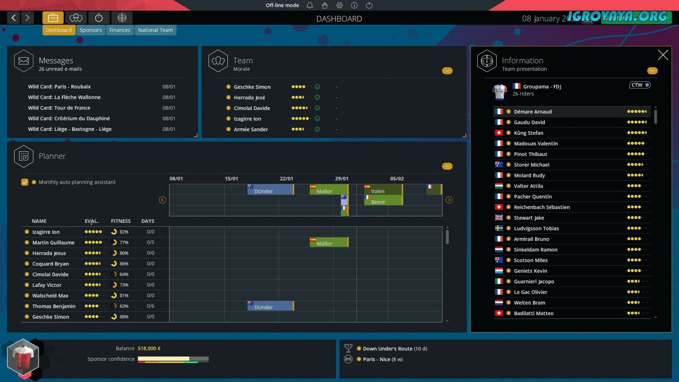 Работа спортивного директора крайне сложна, поэтому приготовьтесь ко всевозможным трудностям. В отличие от прошлогодней одноименной игры, версия 2023 отличается расширенным геймплеем, где вы вольны делать все, что захотите. Убедитесь в этом сами, ведь для этого вам потребуется лишь скачать Pro Cycling Manager 2023 торрент на ПК и приступить к прохождению. Выберите собственный путь развития и придерживайтесь его, либо меняйте в процессе, чтобы подстраиваться под постоянно меняющиеся условия.