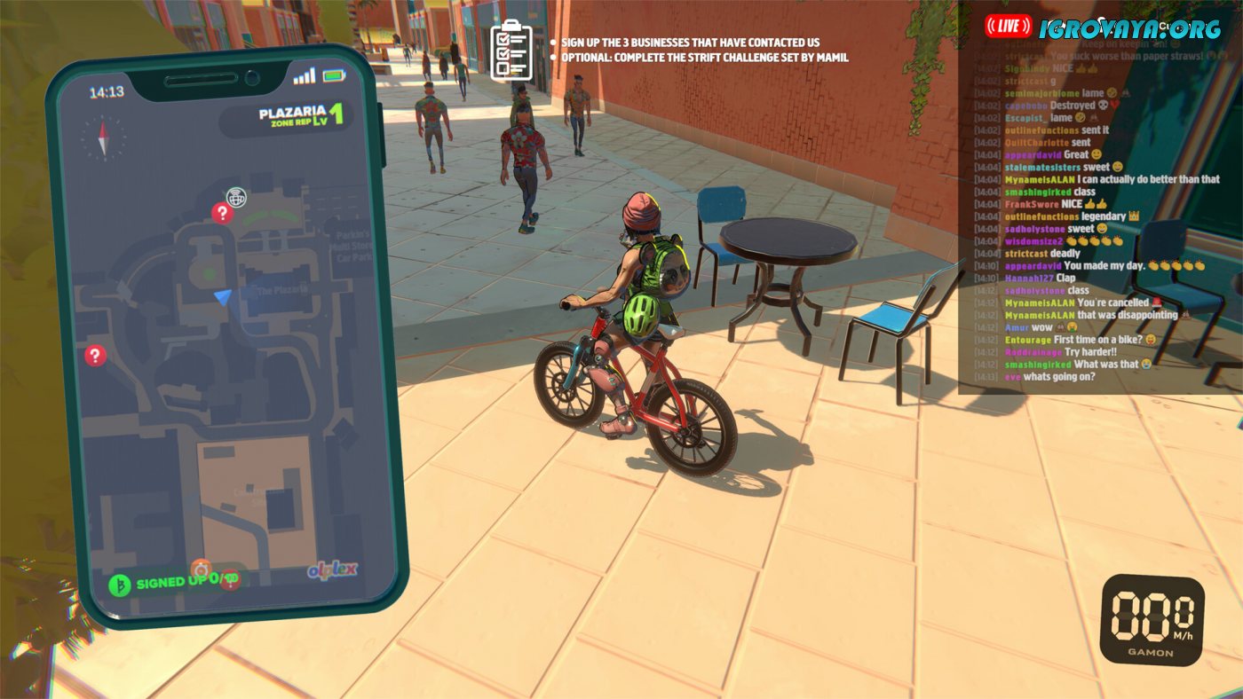 Стилизованный город ждет новых курьерных героев. Игра предлагает как выполнять конкретные миссии и задания, так и свободно изучать окрестности в своем темпе. Не думайте, что все настолько просто и радужно, ведь не всем жителям нравятся нарушающие дорожные правила велосипедисты. Нередко вам придется сталкиваться с представителями порядка и не только, поэтому стоит грамотно распоряжаться заработанными очками навыков. С их помощью вы сможете изменить характеристики главного героя по своему усмотрению, создавая необычные комбинации.
