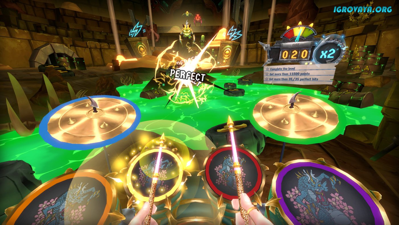 Самое время надеть VR-шлем и погрузиться в мир по-настоящему убойной музыки. Drums Rock предлагает захватывающий геймплей, где вам потребуется изучить нелегкое дело игры на барабанах. Для этого придется попадать в ритм по нужным частям и набирать очки. Несмотря на всю казуальность происходящего в игре представлен полноценный сюжетный режим. Вам предстоит поочередно продвигаться по уровням, где сложность постепенно увеличивается. Также доступна песочница и бесконечный концерт, где вы ничем не ограничены и придется продержаться как можно дольше.