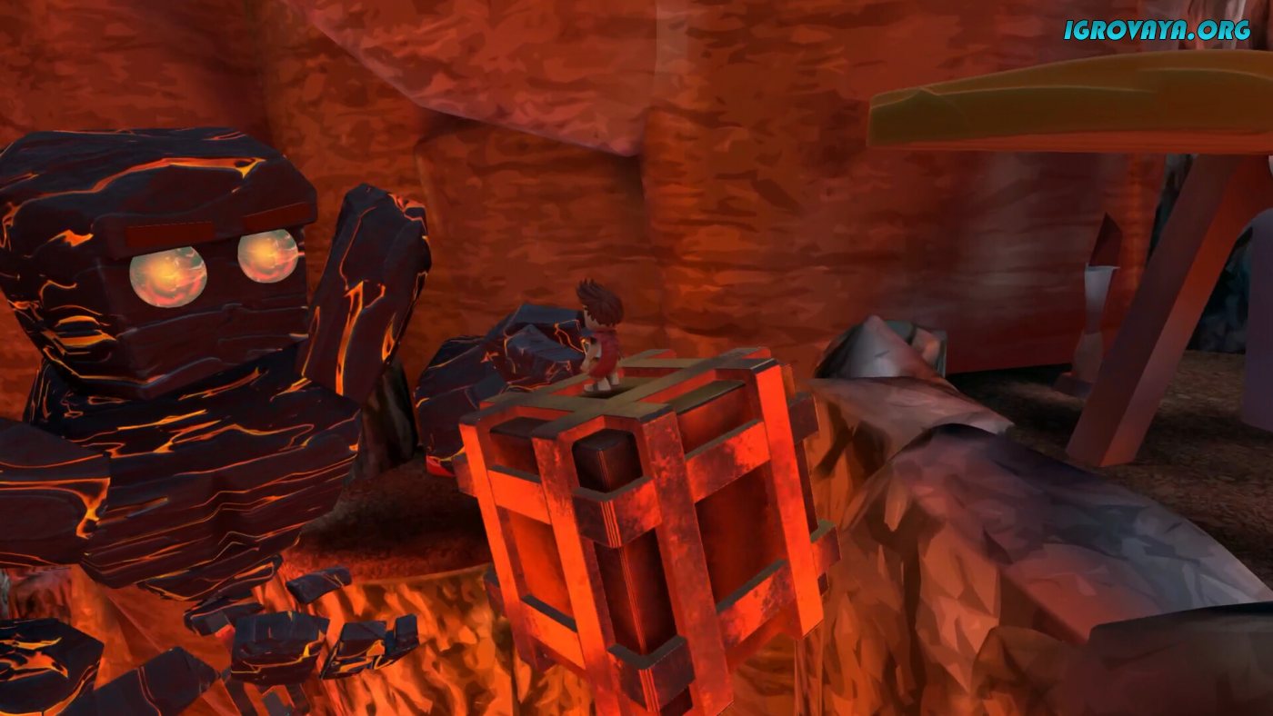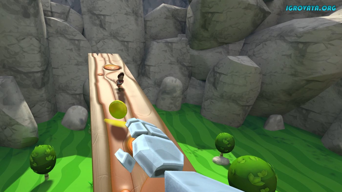 Вы готовы открыть для себя удивительный мир? Тогда самое время отправляться навстречу приключениям. Обратите внимание, что для игры в VR Гигантс требуется, чтобы VR-шлем был хотя бы у одного игрока, второй способен присоединиться к сессии с геймпада или клавиатуры. Геймплей достаточно прост и понятен: вы оказываетесь на уровне, который вам предстоит преодолеть. По большей степени это мальчику требуется пройти к финальной точке, но не страшно, ведь гигант подсобит вам. Подталкивайте вагонетки с героем, переносите его на руке через ущелья и медленно, но верно двигайтесь к цели.