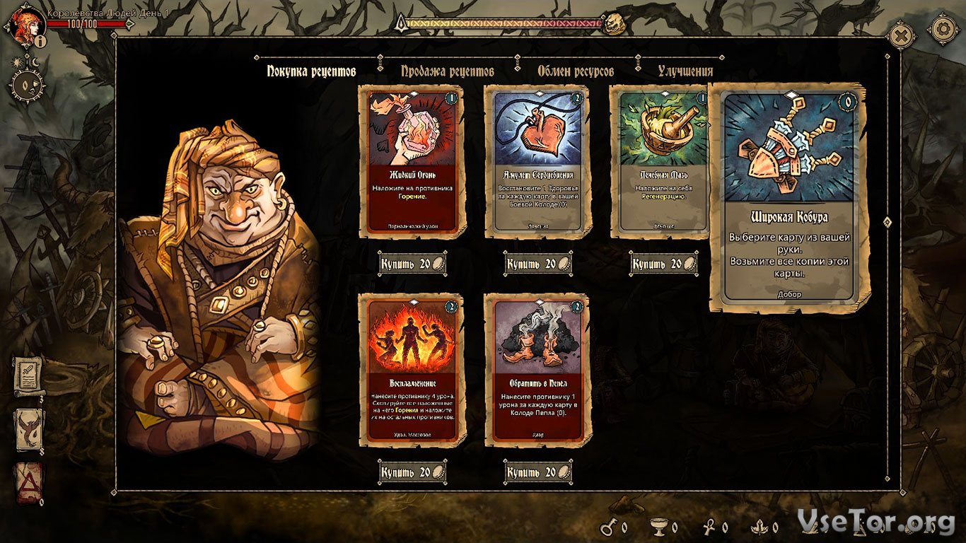 В остальном это типичная ролевая карточная игра, в которой вы будете исследовать окружающий мир, сражаться с различными противниками, прокачивать героев, нанимать союзников и наемников, собирать карты, которые позже можно будет обменивать, продавать и использовать в сражениях, и делать многое другое. А еще не забывайте о многочисленных диалогах, которые могут влиять на сюжетную линию и игру в целом. У нас вы можете скачать Deck of Ashes торрент последнюю версию бесплатно на компьютер.