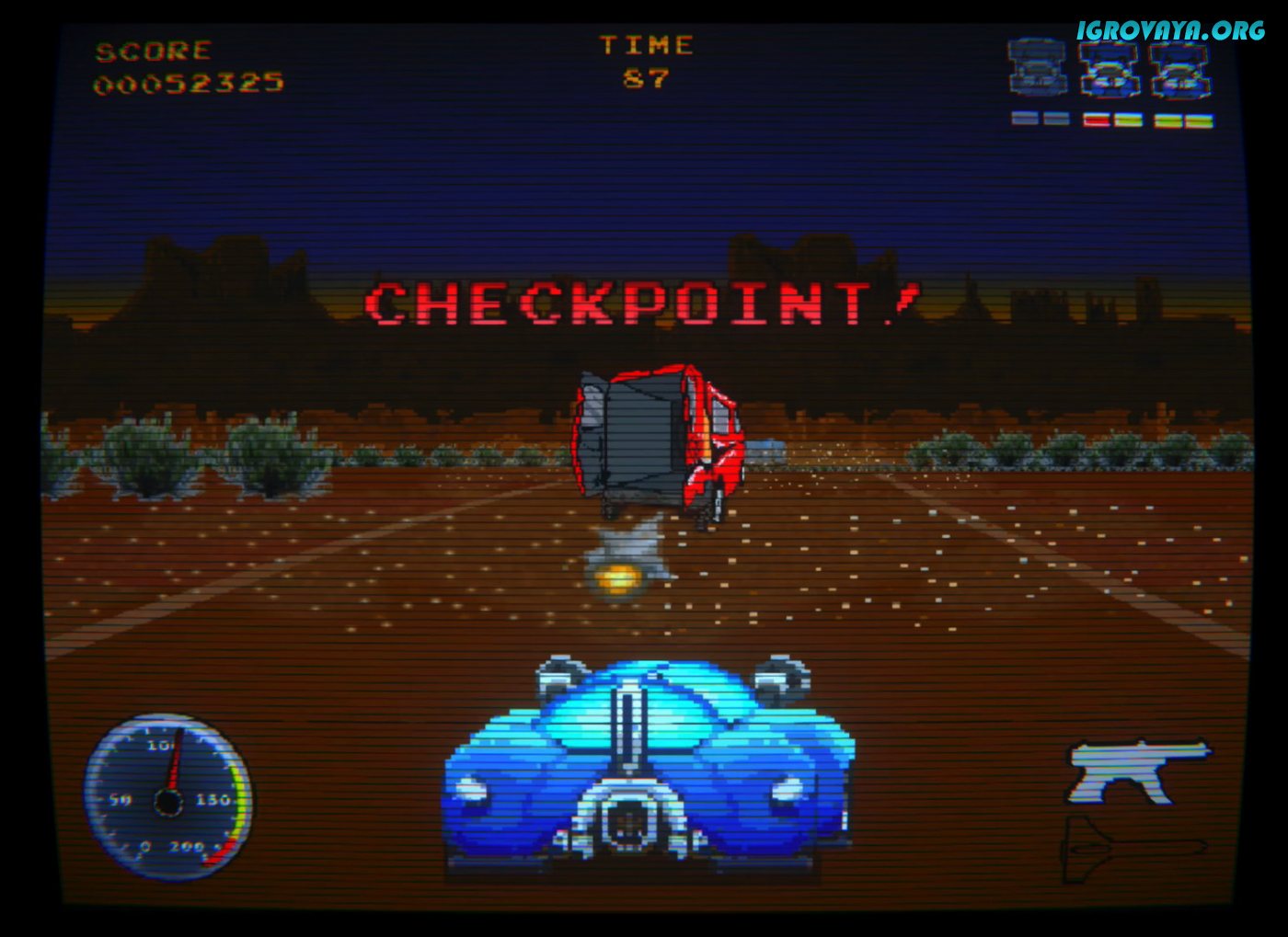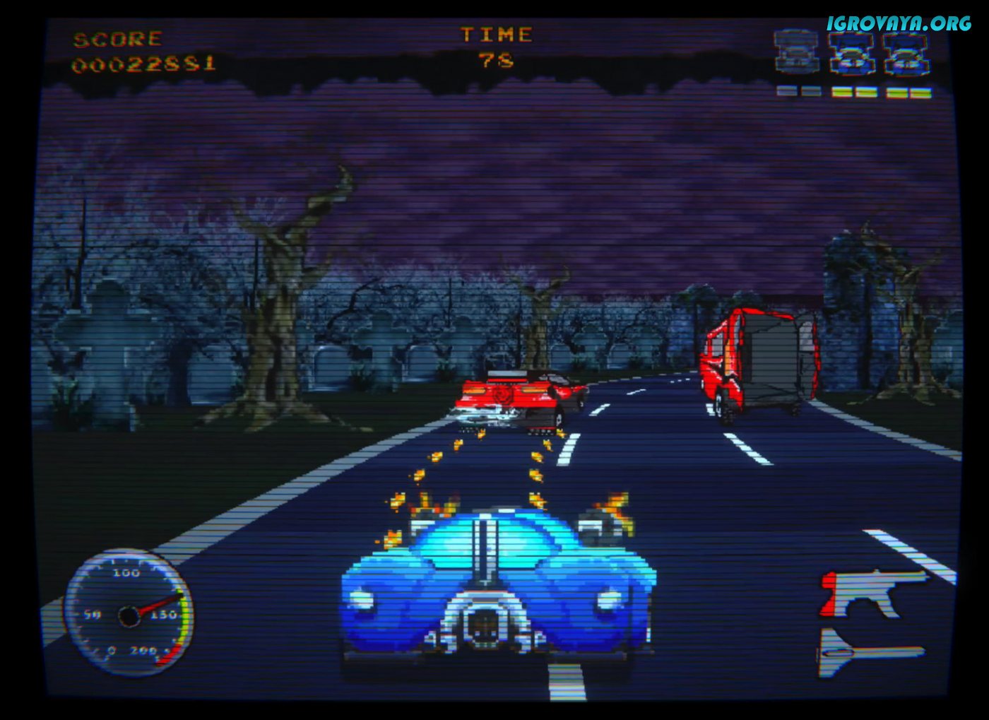Подумали, что это очередная стилизованная под ретро игра? Как бы не так, ведь разработчики Night Jackal постарались создать свой продукт на базе старого движка вместе с этим корректируя то же соотношение сторон к 4:3 для большей аутентичности. Кроме того стоит отметить реалистичную физику, которая подарит незабываемые эмоции во время самих соревнованиях. Кроме того, что вам придется обгонять соперников, вы также будете использовать оружие для уничтожения противников.