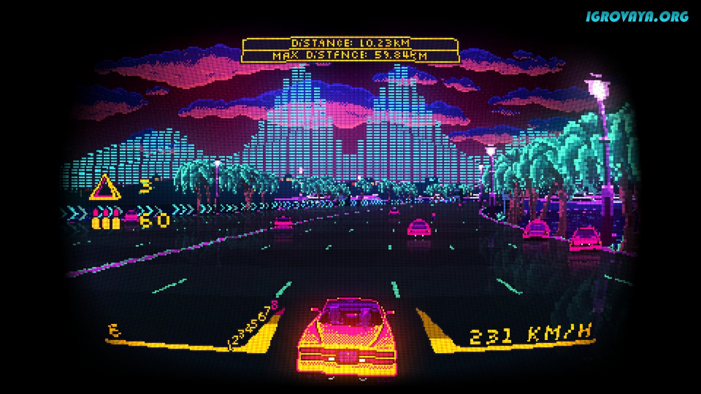 Стоит ли говорить, что популярность ретро стилистики в подобных играх с каждым годом только растет, но оно и понятно, ведь каждому хочется прочувствовать на себе беззаботную атмосферу 80-х годов, когда все казалось потрясающим и беззаботным, навевая чувство ностальгии даже на тех, кому не удалось застать того времени. PalmRide предлагает интуитивно понятное управление и знакомый многим геймплей, где вам потребуется передвигаться по трассе и ловко уклоняться как от проезжающих мимо машин, так и прочих препятствий в попытке заполучить как можно больше очков. Постепенно сложность будет увеличиваться, подбрасывая вам все новые трудности, но не стоит отчаиваться, ведь каждый человек мечтает вписать свое имя если не в тройку, то в десятку лучших игроков.