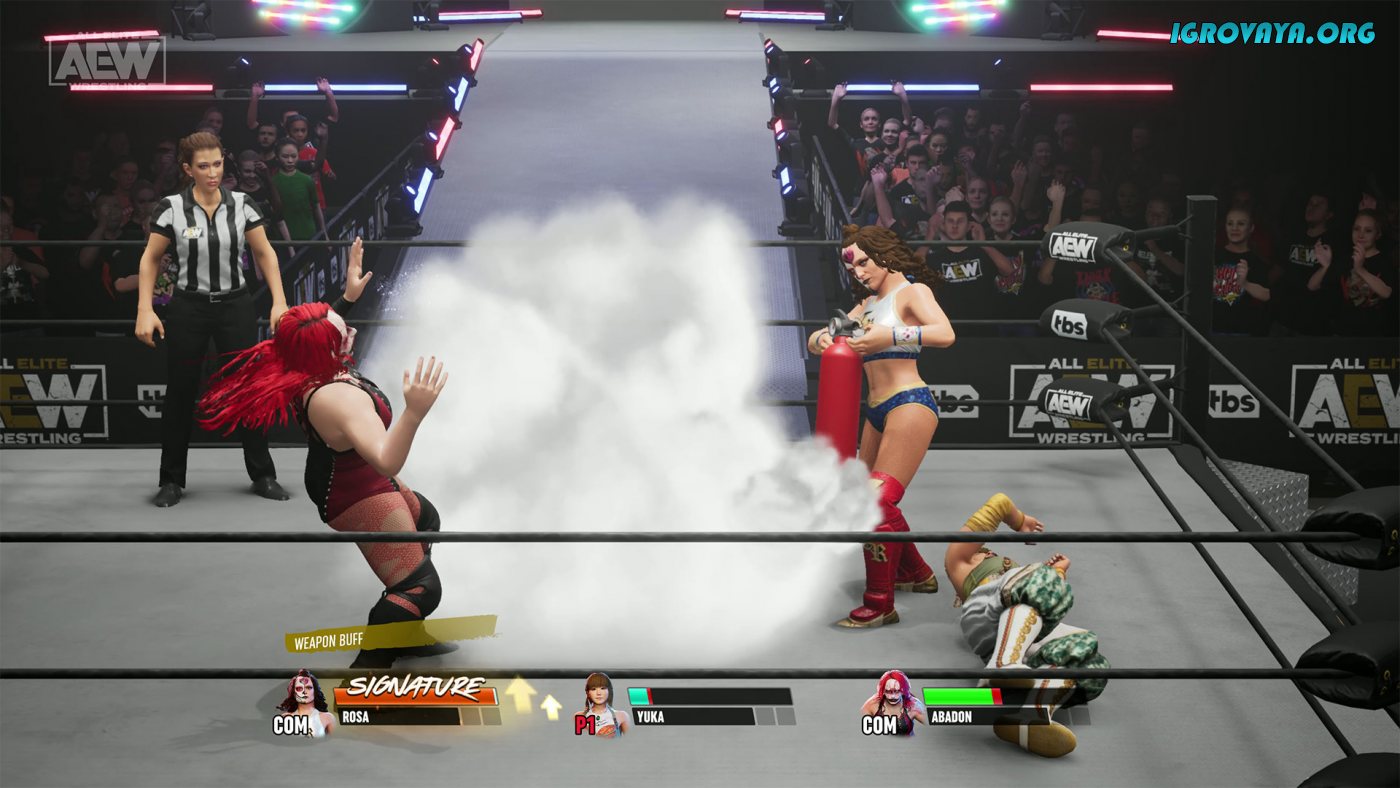 Помимо кулаков вы будете использовать более 40 видов рукопашного оружия, поэтому не тратьте зря время и приступайте к битве. Наблюдайте за поведением соперника, ищите способ за наименьшее время уложить его на лопатки, а также зарабатывайте очки опыта, чтобы в дальнейшем вложить их в открытие новых умений и атак. Постепенно ваша коллекция будет расти, поэтому каждый бой будет незабываемым и вызовет целый спектр эмоций. У нас вы можете скачать AEW: Fight Forever торрент последнюю версию бесплатно на компьютер.