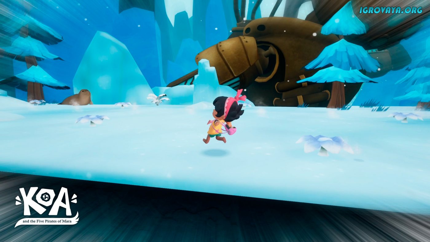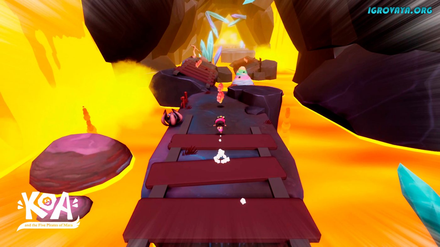 Раскройте потенциал героев в ходе прохождения, ведь помимо сложных платформенных элементов вас ожидают и страшные пираты. Одолейте их раньше, чем те снимут вам драгоценное здоровье, или же вовсе избегайте неприятностей и старайтесь обойти врагов. Не забывайте собирать кристаллы, ведь они позволят открыть костюмы и менять облик действующим лицам. У нас вы можете скачать Koa and the Five Pirates of Mara торрент последнюю версию бесплатно на компьютер.