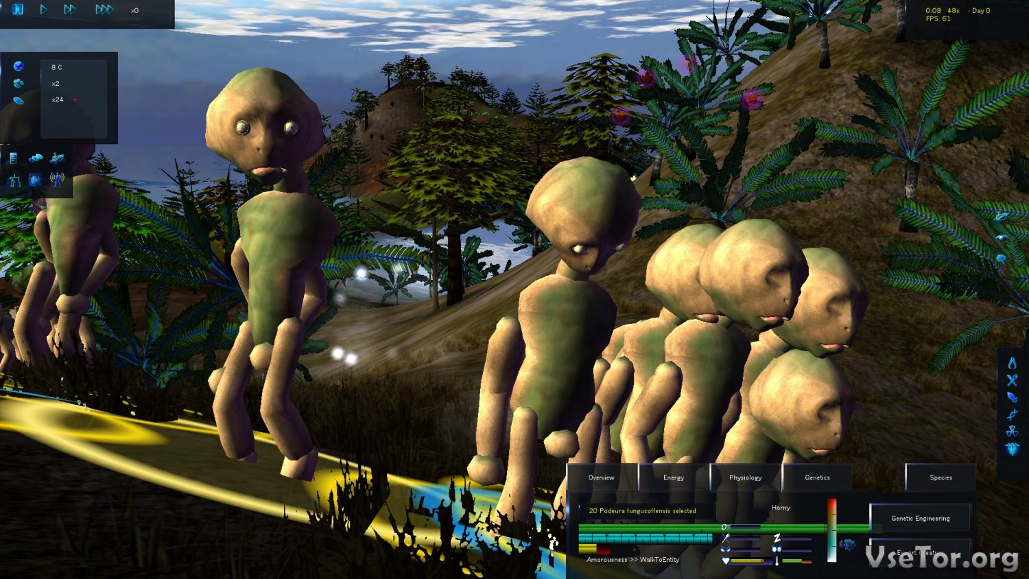 Ну а дальше в Species: Artificial Life, Real Evolution вам придется выбирать, что делать после. Вы можете просто сидеть и наблюдать за тем, как эволюционируют созданные вами существа, как на них влияет созданный вами окружающий мир, и как меняется все вокруг них. Уже через некоторое время вы сможете увидеть, что получилось из ваших творений без вашего как такового участия в эволюции.