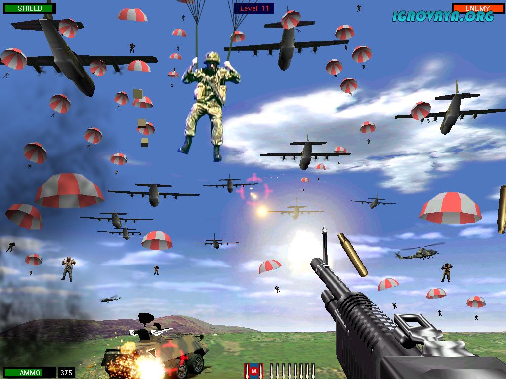 Игровой процесс понятен: уничтожайте все, что двигается, чтобы в конечном итоге разгромить вражескую армию. На деле же главный герой как бы стоит на месте из-за чего вам приходится вертеться в разные стороны, чтобы не пропустить оппонентов. Будьте предельно внимательны, ведь из-за особенностей ландшафта не всегда можно предсказать с какой стороны готовится нападение и быстро меняйте тактику в зависимости от ситуации на поле боя. У нас вы можете скачать Beach Head 2002 торрент последнюю версию бесплатно на компьютер.