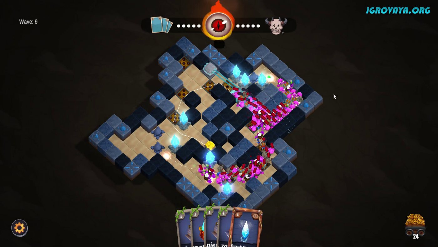 Противники получились достаточно колоритные за счет уникальных особенностей и поведения на поле битвы. Одни будут линейно следовать согласно заданному маршруту, другие же передвигаются перебежками и еще множество самых разных аспектов. Изучайте их, ищите слабые стороны и сделайте все возможное, чтобы уничтожить их раньше, чем те доберутся до конечной точки. Формируйте уникальный игровой стиль и постоянно совершенствуйте его, ведь игра создает все условия для этого. В этом вам помогут случайно выпадающие карты обозначающие определенные постройки, начиная от башен и заканчивая интерактивными ловушками. У нас вы можете скачать Digs торрент последнюю версию бесплатно на компьютер.