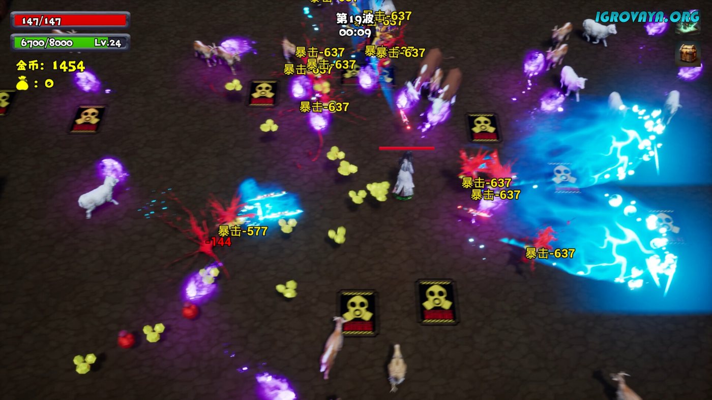 Как и в большинстве рогаликов, сложность здесь нарастает с каждой минутой, буквально. Каждые 60 секунд количество врагов будет расти, а на смену обычным мобам придут их усиленные версии или даже мини-боссы. За уничтожение противников вам будут зачисляться очки и как только уровень поднимется, вы сможете выбрать оружие или улучшение на выбор из нескольких случайно выпавших вариантов. У нас вы можете скачать BroChicken торрент последнюю версию бесплатно на компьютер.