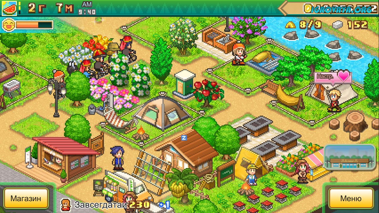 Небольшая японская студия Kairosoft специализируется на создании самых разных стилизованных под ретро симуляторов из-за чего каждый их проект заметно выделяется на фоне предыдущего. Forest Camp Story переносит игроков в лоно дикой природы и позволяет прочувствовать расслабляющую атмосферу за счет реалистичных звуков и умиротворяющей музыки. Геймплей получился достаточно разнообразных и постепенно усложняющимся, ведь по мере прохождения вы будете открывать новые механики, а вас участок будет увеличиваться, позволяя все большим отдыхающим останавливаться в вашем кемпинге.