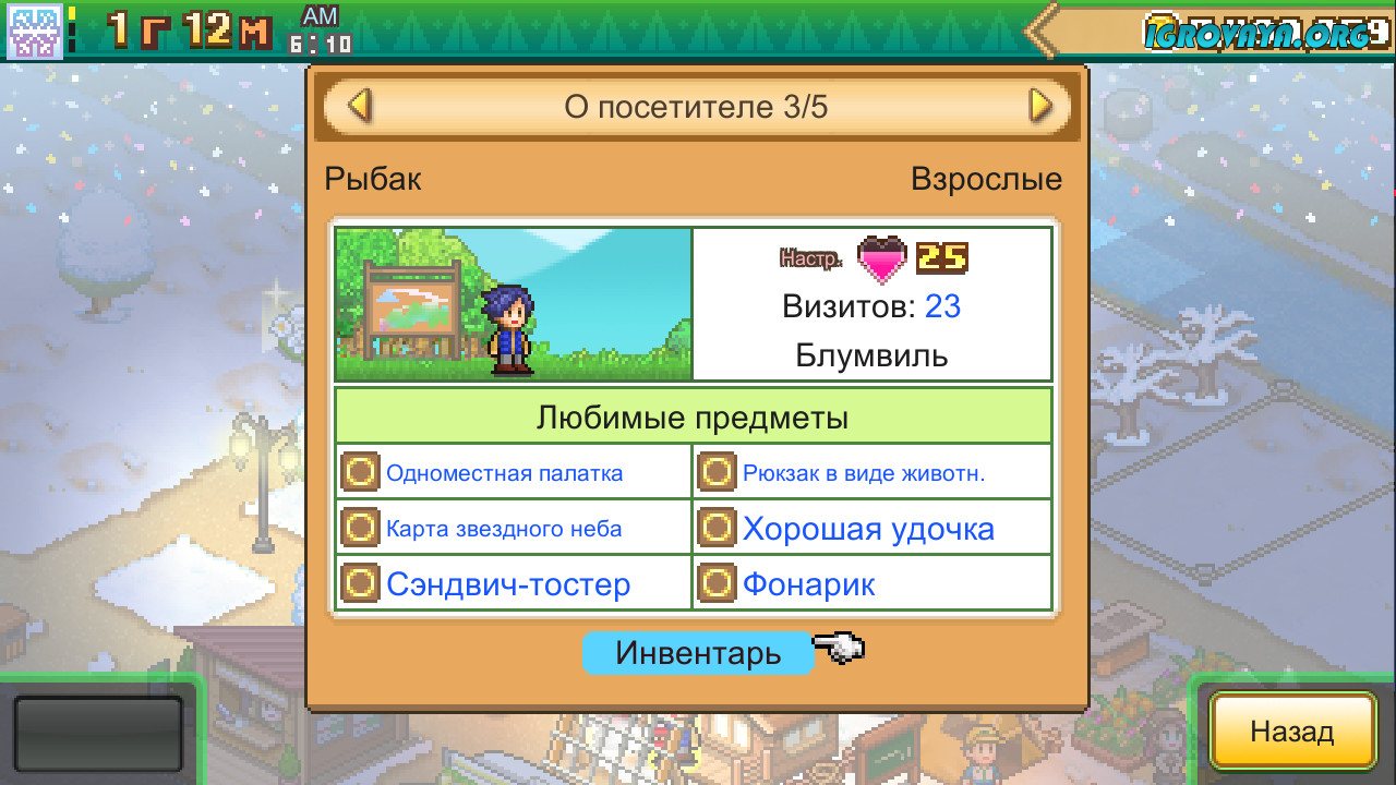 Не стоит переживать, если до этого вы ни разу не ходили в поход: местный гид расскажет об основных особенностях, чтобы вы не запутались и получили наслаждение от игрового процесса. Интересно то, что со временем в вашем распоряжении окажется не только участок для палаток, но и некоторые заведения в ближайшем городке по типу магазина со спорттоварами и не только. Обустраивайте их по своему усмотрению, прислушивайтесь к клиентам и получайте пятизвездочные отзывы от тех, кому посчастливилось разделить отдых вместе с вами. У нас вы можете скачать Forest Camp Story торрент последнюю версию бесплатно на компьютер.
