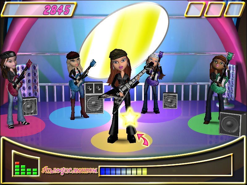 Не на последнем месте стоят убойные мини-игры, где вы сможете разработать логотип для группы или же прокатиться с ветерком на скейте, собирая флаги ради дополнительных очков. Присоединяйтесь к любимым героиням и проживите лучшую жизнь вместе с ними. У нас вы можете скачать Bratz Rock Angelz торрент последнюю версию бесплатно на компьютер.