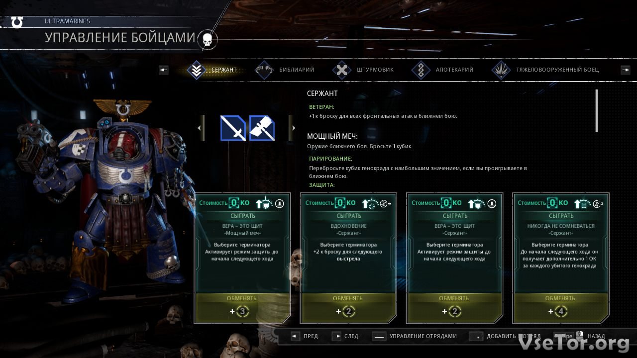 Что касается отрядов, так вам будет предложено взять один из четырех известных отрядов. Вам будут доступны Темные Ангелы, Космические Волки, Ультрамарины, и легендарные Кровавые Ангелы. Правда, на прохождение можно поиграть лишь в две существующие в игре на данный момент кампании. Одна из них за Кровавых Ангелов, а вторая за генокрадов. Притом, генокрадами разработчики уделили невероятно много сюжетного времени, ведь играть за них во вселенной Warhammer предлагается чуть ли не впервые в истории. У нас вы можете скачать Space Hulk Tactics торрент последнюю версию бесплатно на компьютер.