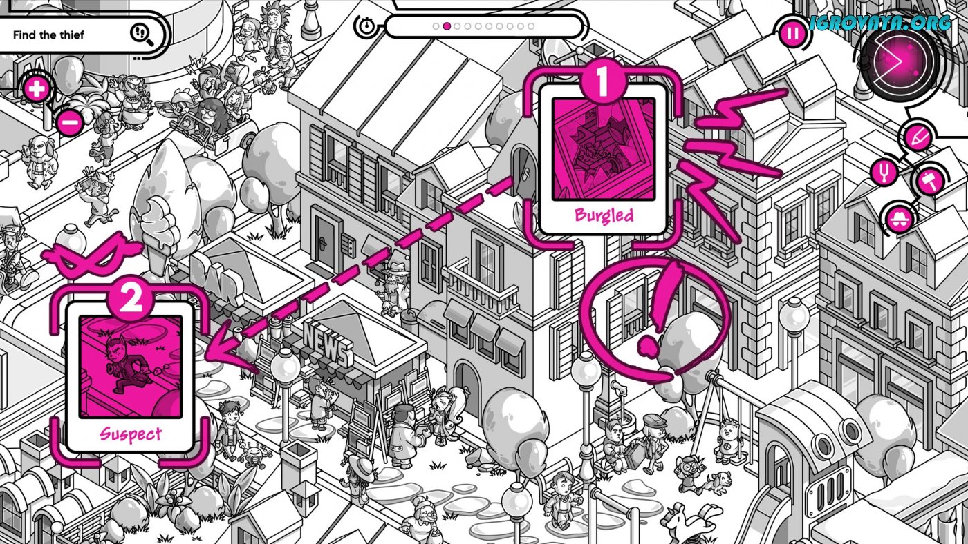 Геймплей достаточно специфичен за счет того, что вам предлагают взглянуть на весьма обширную карту. Вам придется отыскать место преступления и попытаться понять, что здесь произошло. Для этого внимательно изучите всех действующих лиц, саму ситуацию и соедините все воедино. Отмотайте время и взгляните на то с чего все начиналось, чтобы соединить все действия в единую цепочку.