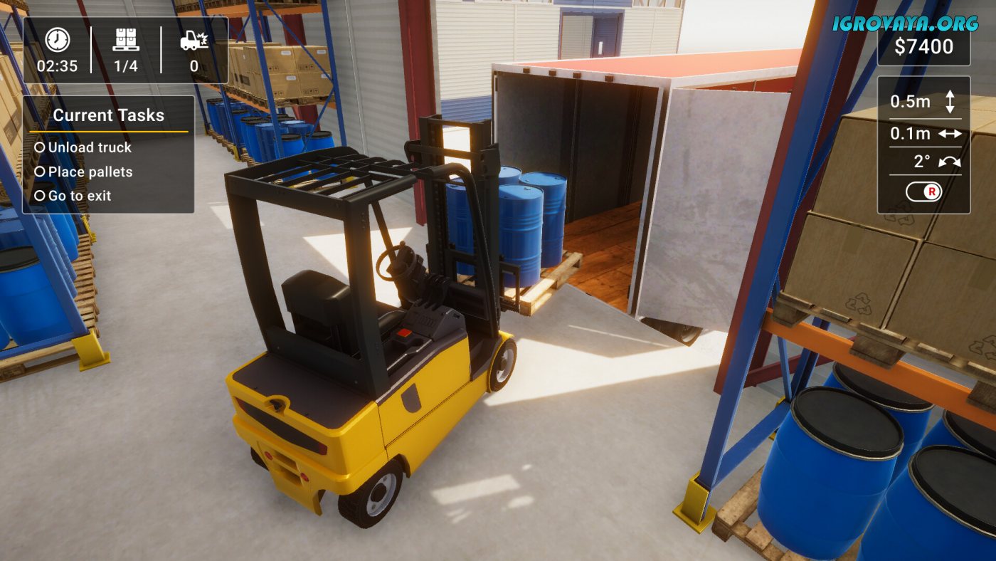 Геймплей представлен в формате различных миссий, чья сложность постепенно увеличивается. Начните с обучения и освоения азов, а после медленно, но верно двигайтесь по карьерной лестнице, сталкиваясь все с новыми трудностями и испытаниями. Обычно задания обладают обязательными и побочными действиями, но именно за последние вы сможете заполучить максимальное вознаграждение, поэтому не ленитесь и выполняйте работу на максимум, чтобы доказать свой профессионализм. У нас вы можете скачать Forklift Simulator 2023 торрент последнюю версию бесплатно на компьютер.