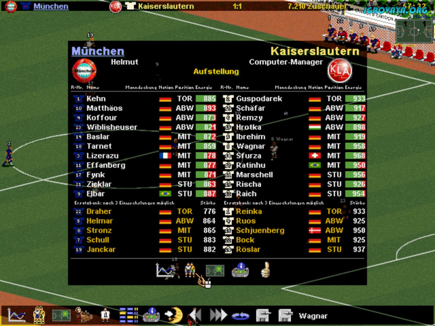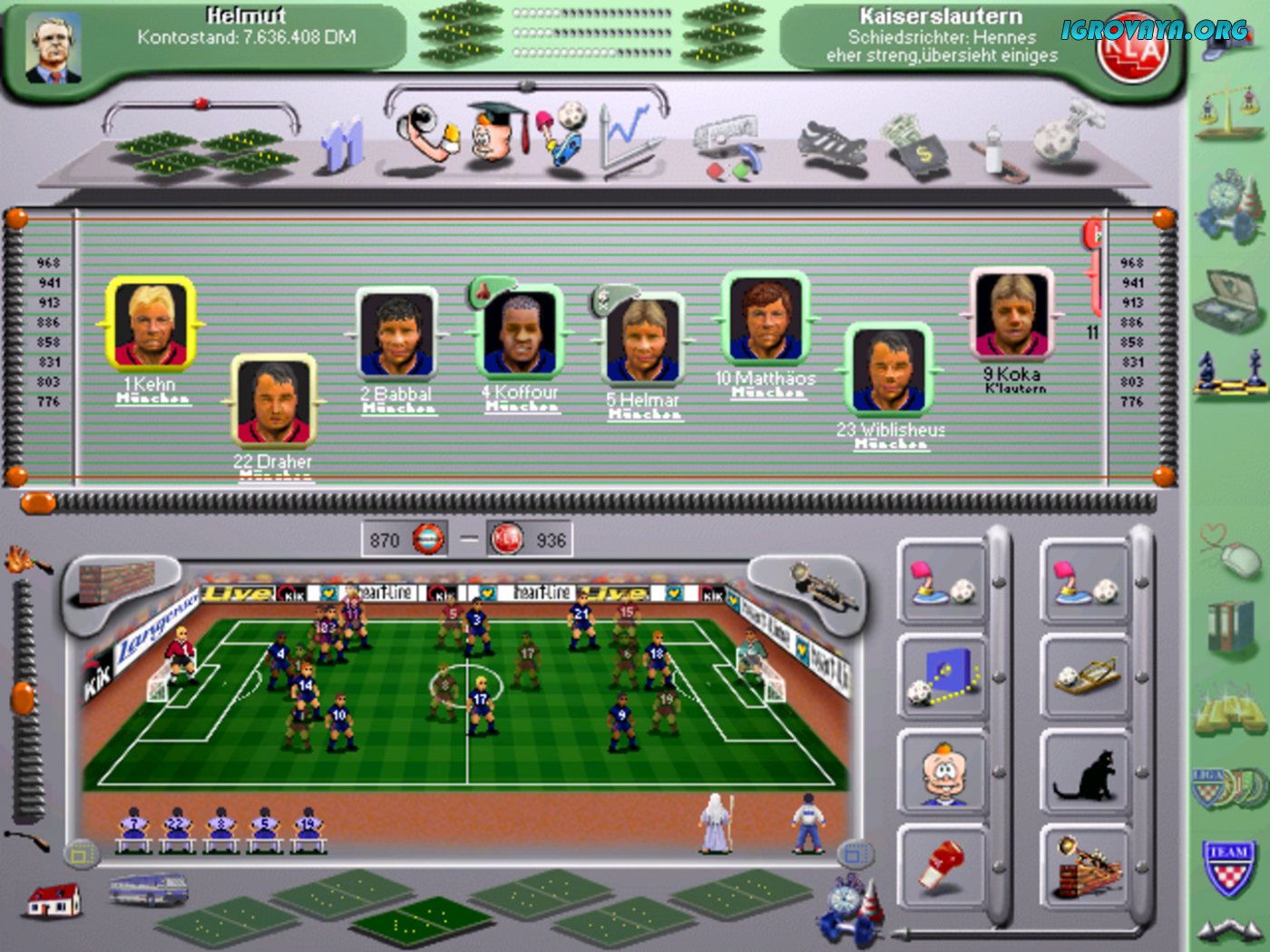 Даже спустя десятилетия игра воспринимается красочно и живо за счет хоть и простого, но крайне глубокого геймплея. KURT DER FUSSBALLMANAGER предлагает с головой погрузиться в происходящее, ведь перед стартом самих игр потребуется хорошенько подготовиться. Начните с подбора спортсменов, необходимой экипировки, тренировки с упором на уникальные качества самих игроков, а после расположить их на футбольном поле в нужном порядке, чтобы перейти непосредственно к самой игре.