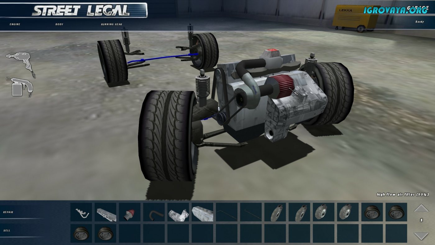 Оригинальный геймплей вместе со смесью механик подарят незабываемые эмоции всем любителям нестандартных игр. В свое время первая часть легендарной серии Street Legal покорила игроков за счет своего разнообразия, ведь вы в силах не только ощутить азарт от спортивных состязаний, но и проявить свою творческую нотку. В этом вам помогут многочисленные компоненты для того, чтобы комбинировать их между собой в попытках создать нечто уникальное. Интересно то, что вы будете вручную разбирать машину, начиная с колес и заканчивая двигателем. Отдельные компоненты отвечают за конкретные характеристики, например, разгон, максимально набираемая скорость и управляемость.
