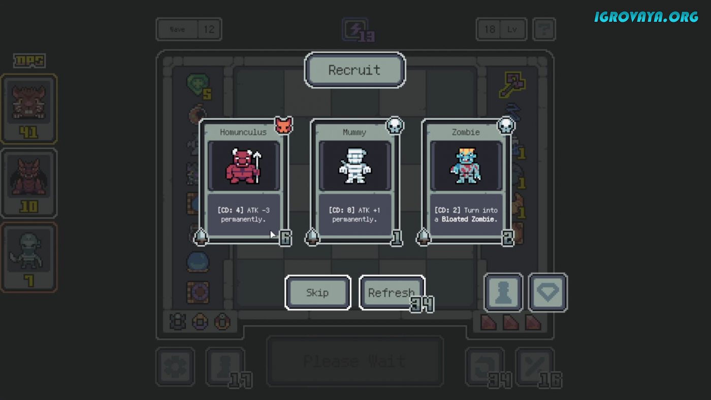 Endgame of Devil — это упрощенный рогалик с элементами автошахмат, где вам предстоит примерить роль не отважного героя, а чистого зла в лице дьявола. Неутомимые авантюристы зачастили в ваши покои в попытках раздобыть драгоценные камни, но в какой-то момент вам надоело это нахальство. Соберите отряд из верных миньонов и дайте бой, чтобы преподать непрошеным гостям наглядный урок, но будьте осторожны, ведь постепенно их сила будет расти, заставляя вас принимать сложные решения и искать альтернативный способ добиться того или иного результата.