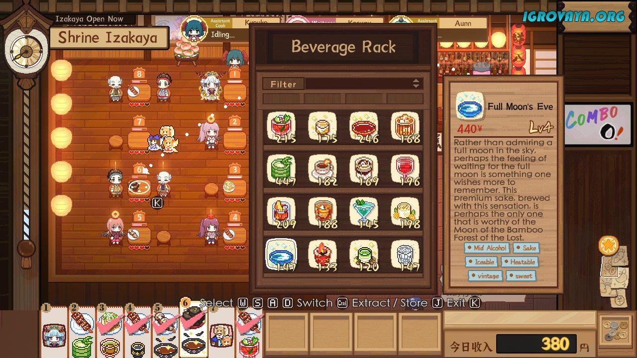 Во время обслуживания посетителей вам придется ловко выполнять и разносить заказы, а в перерывах между наплывами думать о том, как разнообразить меню. Комбинируйте различные ингредиенты между собой, дайте название новым блюдам и экспериментируйте, ведь у вас есть все инструменты для этого. У нас вы можете скачать Touhou Mystia's Izakaya торрент последнюю версию бесплатно на компьютер.