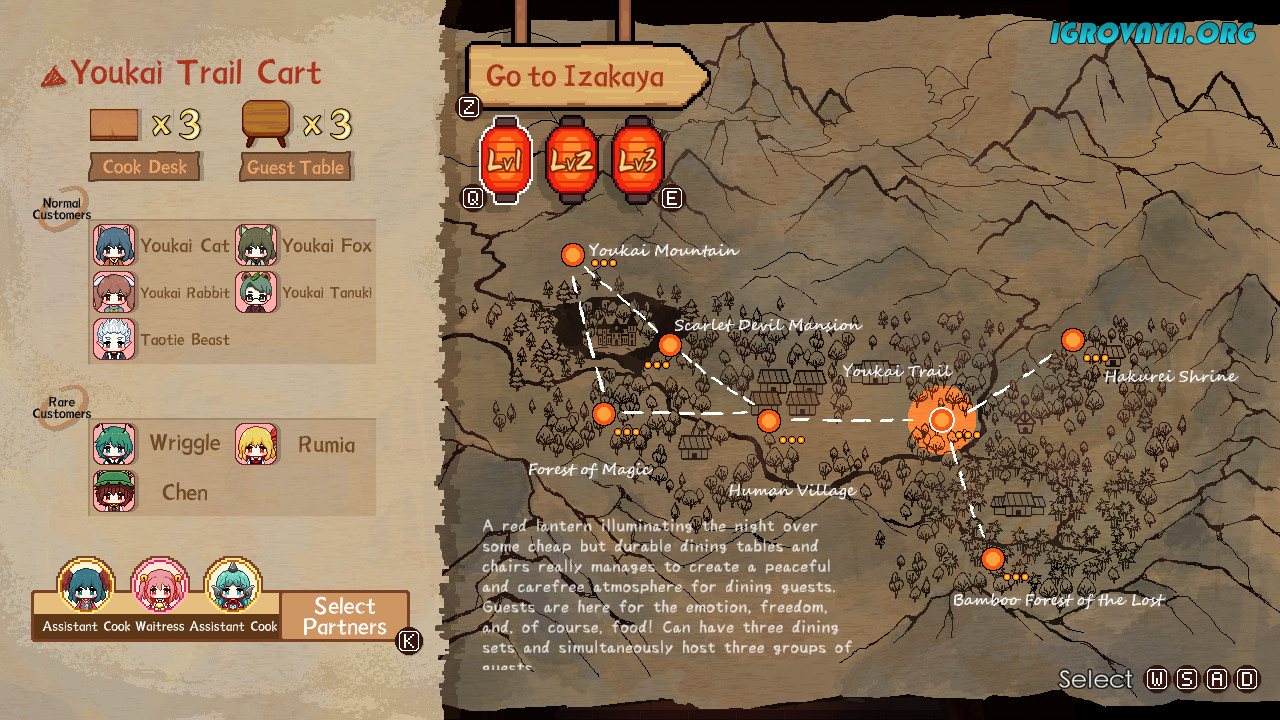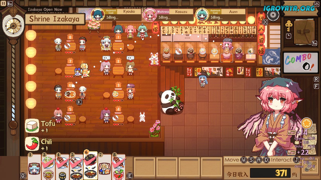 Touhou Mystia's Izakaya — это основанный на вселенной Тохо симулятор ресторана, где вам предстоит познакомиться с уже известными персонажами и взглянуть на них под другим углом. Мистая решила открыть собственную идзакая и преуспеть в этом нелегком деле, ведь жители Генсокё весьма требовательны. Вам предстоит днем выбираться за пределы города в поисках нужных ингредиентов, а также познакомиться с колоритными действующими лицами, а с наступлением ночи обслуживать клиентов и придумывать новые рецепты.