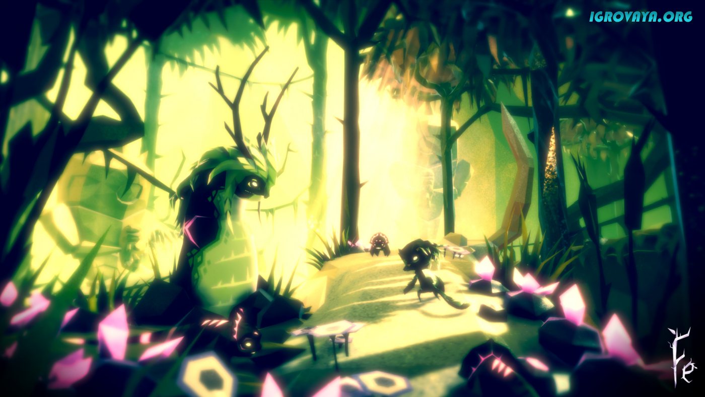Fe — это не просто платформер-головоломка с элементами экшена, а целый стилизованный мир переносящий игроков в причудливую вселенную, где обитают необычные создания. Пройдите по мрачному северному лесу, изучите его экосистему и раскройте интригующие загадки, которые прольют свет не только на появление встречающихся по мере прохождения существ, но и на то, как появился загадочный персонаж по имени Фе.