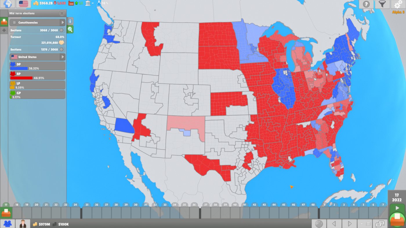 Несложно догадаться, что в основе геймплея лежат всевозможные эксперименты. В вашем распоряжении есть игровая площадка размером с мир, где реалистично отображены наиболее крупные государства. Начните свою политическую карьеру в качестве рядового активиста или же сразу примерьте на себя роль лидера влиятельной партии. Только вам решать будете ли вы продвигать личные интересы, поддадитесь влиянию партии или же попытаетесь прислушаться к мирным жителям и работать на благо национальному престижу.
