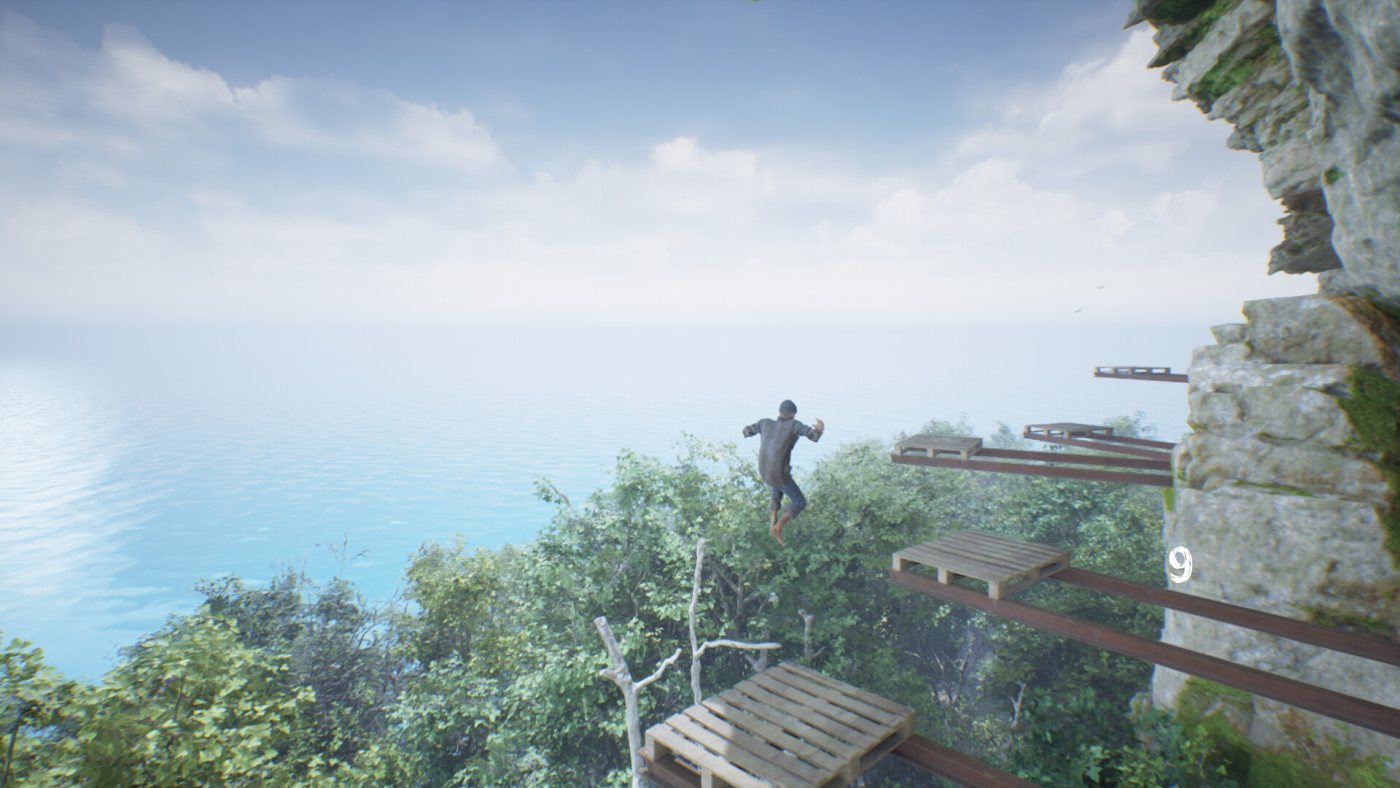 Как и в большинстве игр подобного жанра здесь напрочь отсутствуют сохранения или контрольные точки. В Jump Like a Grad Student вы не умрете при падении, зато окажетесь в стартовой точке из-за чего придется совершить свой подъем заново. Если вам повезет, то вы сможете зацепиться за одну из платформ, но это лишь вопрос удачи, которая в любой момент может отвернуться от вас.