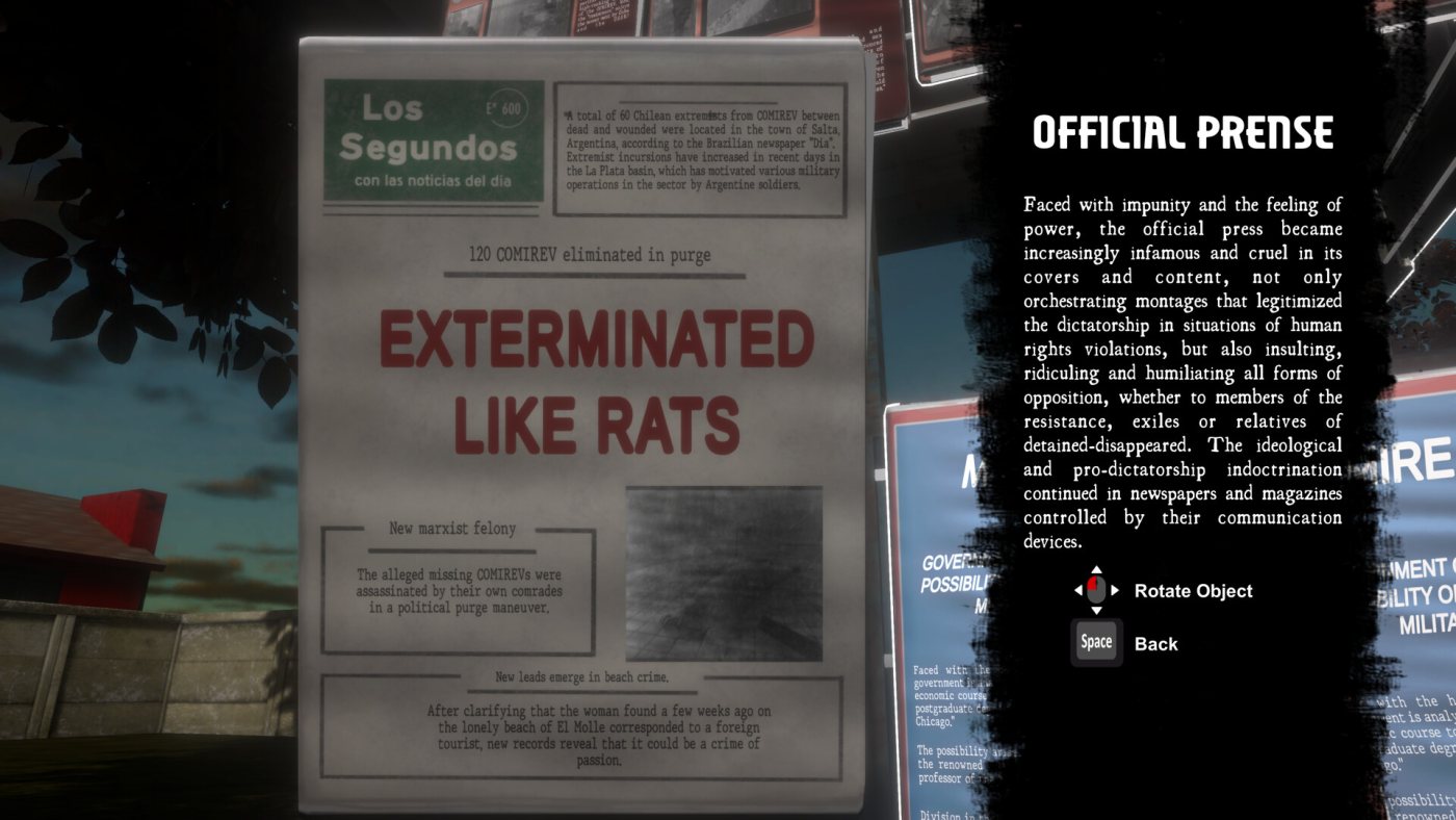 Dirty Wars: September 11 — это приключенческая игра в основу которой легли реально происходившие исторические события. В начале 70-х годов администрация президента Никсона и ЦРУ были обеспокоены возможностью возникновения еще одного коммунистического режима в Южной Америке, в результате чего кабинет президента оказал поддержку перевороту против Сальвадора Альенде, который пропагандировал чилийский путь к социализму. 11 сентября 1973 года Альенде был свергнут и установлена военная диктатура во главе с Аугусто Пиночетом, которая продлилась 17 лет и привела к темным временам: тысячи задержанных подверглись пыткам и бесследно исчезли. Взгляните на происходящее от лица тех, кому не посчастливилось оказаться в центре событий, а также узнайте удастся ли обычному человеку как-то повлиять на исход.