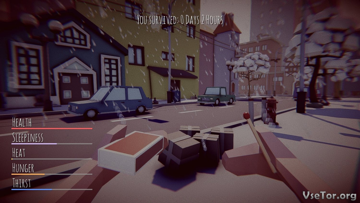 В вашем распоряжении будет огромный частично открытый мир в границах небольшого городка. На дворе зима, а значит, вы будете мерзнуть – ищите еду и горячее питье, добывайте еду, старайтесь всегда оставаться сытым и согретым, иначе холодная или голодная смерть в любой момент застанут вашего героя врасплох.