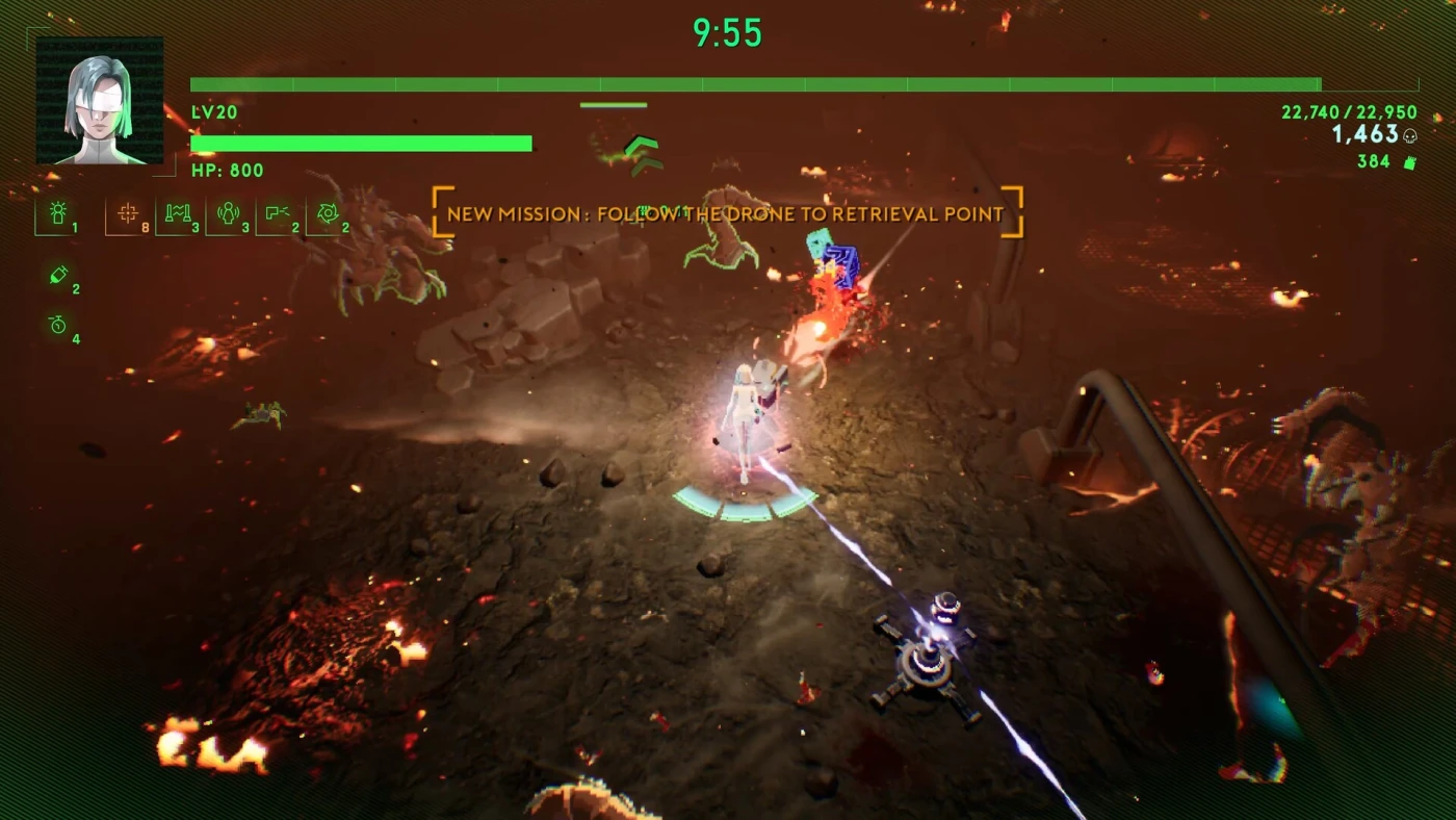 Игра даёт вам кучу оружия – от автоматов до лазеров. Вы сами выбираете, что улучшить перед боем: прибавить здоровья, ускорить пушки или взять что-то помощнее. Бои идут быстро: стреляете, пока время не вышло, а враги лезут со всех сторон – мелкие бегают стаями, большие бьют так, что зубы трясутся. Уровни яркие, с кислотными красками, как в старых sci-fi фильмах. Ещё можно играть с друзьями или против них – кто дольше продержится.