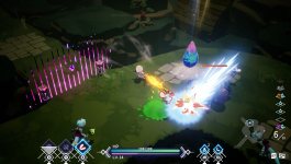Исследование построено на классическом цикле «спуск-возвращение»: в подземелье вы собираете ресурсы и чертежи, а в лагере превращаете добычу в снаряжение и еду. Механики продуманы: выращивайте овощи у кузнеца, чтобы он мог ковать доспехи, или кормите повара мясом для лечебных рагу. Особый шарм добавляет принцесса — её забавные комментарии и трогательные истории о прошлом королевства озвучены с теплотой, которая смягчает мрачную основу сюжета. Визуально игра напоминает ожившую сказку: читби-персонажи сражаются с мультяшными монстрами вроде Рыцарей-гекконов, а локации подсвечены пастельными тонами.