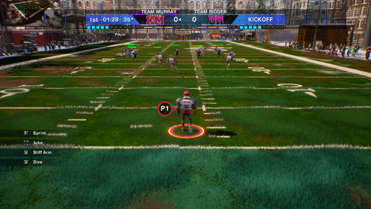 Wild Card Football — это взрывной микс классического аркадного футбола и карточной стратегии, где реальные игроки NFL (без лицензии команд, но с именами и внешностью) сражаются на нестандартных полях — от классических стадионов до промзон с граффити. Вместо привычных 11 на 11 здесь динамичные матчи 7 на 7 с утрированными анимациями: защитники бросают квотербеков через плечо, как рестлеры, а раннинбеки телепортируются джюками сквозь толпу.