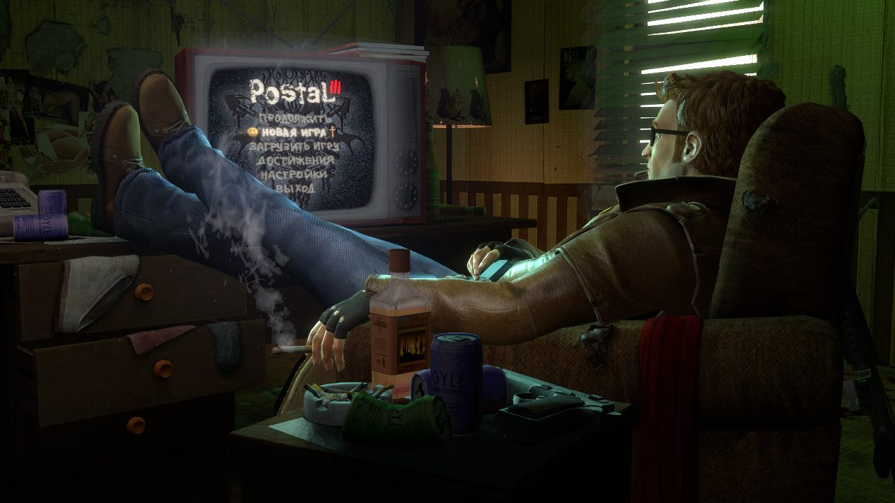 Постал 3 (Postal 3) – это как пьяный бармен, который пытается шутить про политику и секс, но в итоге просто разбивает бутылку себе по лбу. Главный герой, вечно брюзжащий Postal Dude, оказывается в городе Катарсис, где ему предстоит выполнять абсурдные задания: от разгона хоккейных мамаш у секс-шопа до сбора заражённых кошек — и всё это под аккомпанемент шуток уровня «а вот если взять баджера и прикрутить ему бензопилу...».