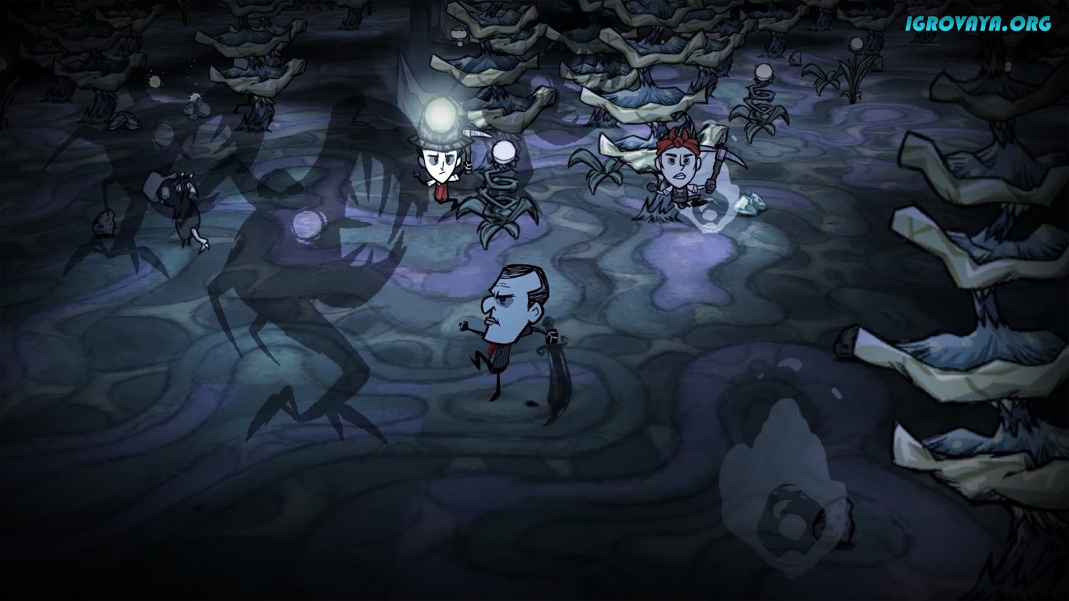 А еще наконец-то появилась возможность приручить животное. Попробуйте приручить Бифало, или еще кого-нибудь, взобраться прирученному животному на спину и отправиться в путешествие. Поверьте, впечатлений будет массу! А еще и мир постоянно меняется: погода, время года, время суток, и многое-многое другое… У нас вы можете скачать Don't Starve Together торрент последнюю версию бесплатно на компьютер.