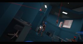 Главная фишка — уникальная механика телепортации. Выстреливайте маркер-шар, заглядывайте в «окошечко» будущей точки перемещения, оценивайте обстановку — и мгновенно переноситесь, чтобы спрятаться в шкафу или ударить врага в спину канцелярским крючком-расчленителем. Физика здесь не просто для красоты: каждый предмет можно бросить, схватить или использовать как оружие, а нефункциональные вентиляционные решётки превращаются в секретные тропы.