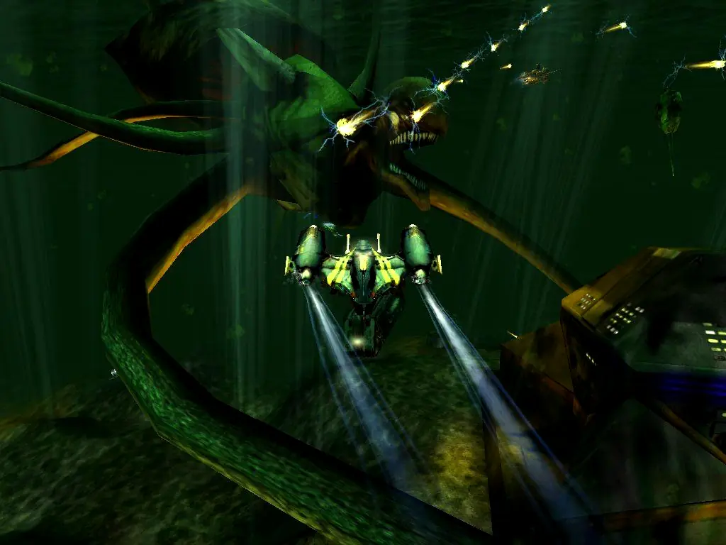 Подводный мир Aquanox поражает детализацией: от причудливых коралловых каньонов до руин древних городов, подсвеченных мерцающими биолюминесцентными организмами. 34 миссии предлагают разнообразие — от спасения гражданских до охоты на гигантских кракенов. Особняком стоит система боя: управление субмариной требует навыков, близких к воздушным боям, но с океанской физикой — вам придётся учитывать течения, маневрировать между скал и уворачиваться от торпед в трёхмерном пространстве.