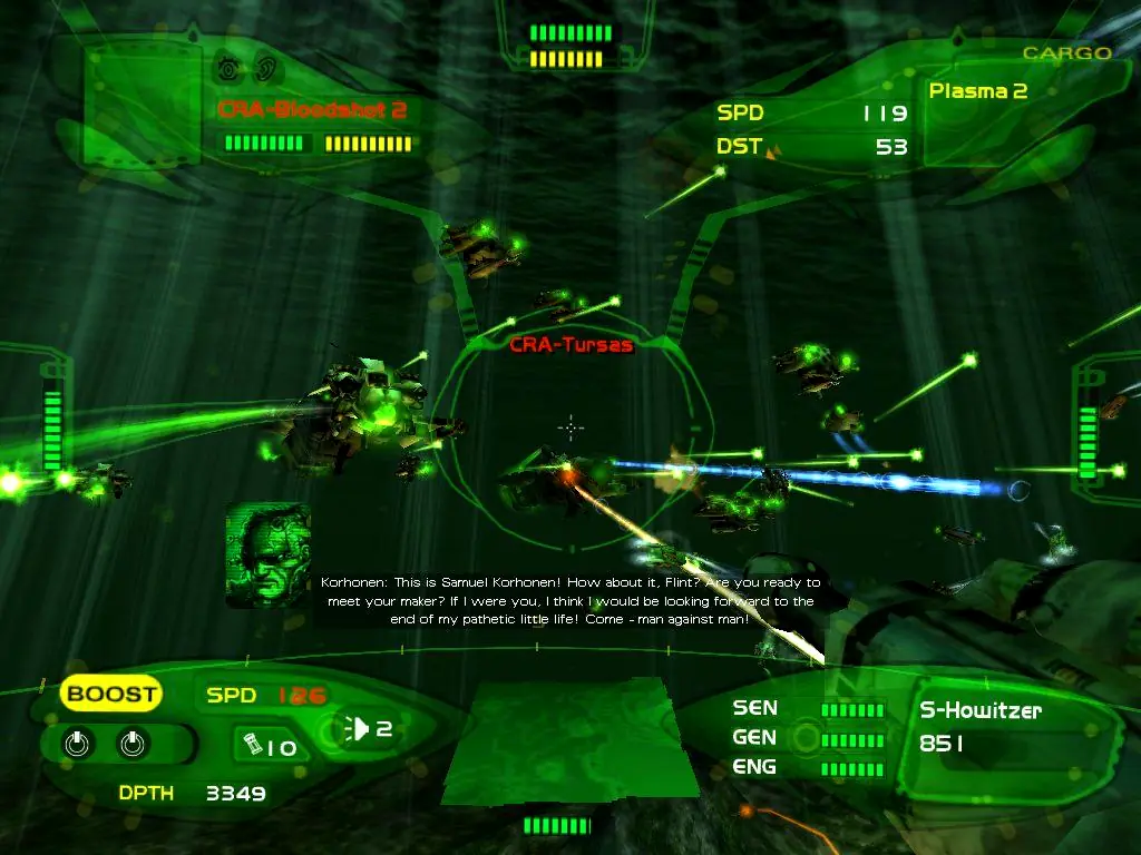 Aquanox — адреналиновая смесь подводного экшена и научной фантастики, переносящая игроков в мрачное будущее, где человечество выживает в глубинах океана. Вы берете на себя роль наёмника по прозвищу Изумрудный Дэд-Ай Флинт, прокладывающего путь среди враждующих фракций, мутировавших морских чудовищ и затонувших мегаполисов. Геймплей балансирует между стремительными перестрелками и тактическим выбором — какие контракты выполнять, какие корабли модернизировать и с кем заключать временные альянсы.