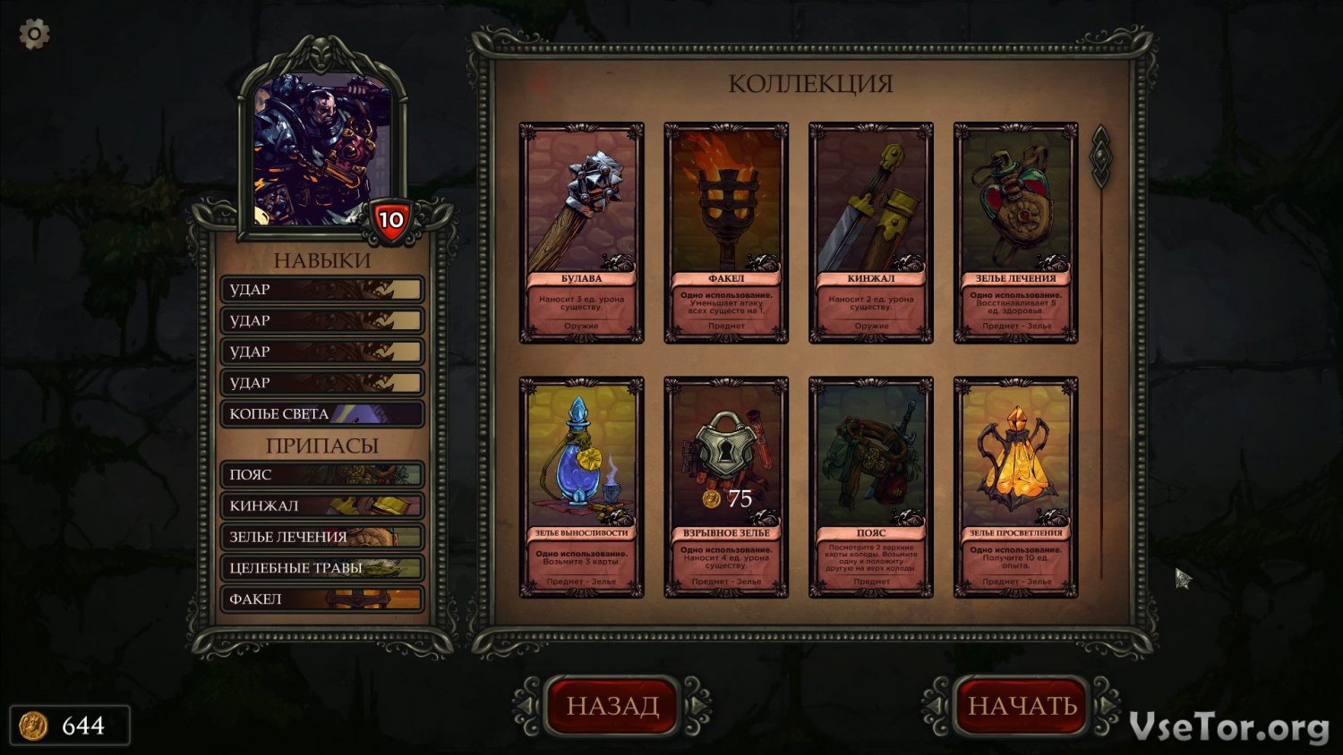Игровой же процесс основан на использовании всевозможных карт. Притом, карты в этой игре бывают самых разных видов. Есть карты персонажей и противников, карты навыков и способностей, предметов и даже оружия, и в вашей колоде должны быть в итоге карты на любой случай. Путешествуйте по этажам башни, сражайтесь в пошаговых карточных боях с многочисленными монстрами, убивайте боссов, находите артефакты и делайте все, что нужно для полного очищения башни от сил Зла.