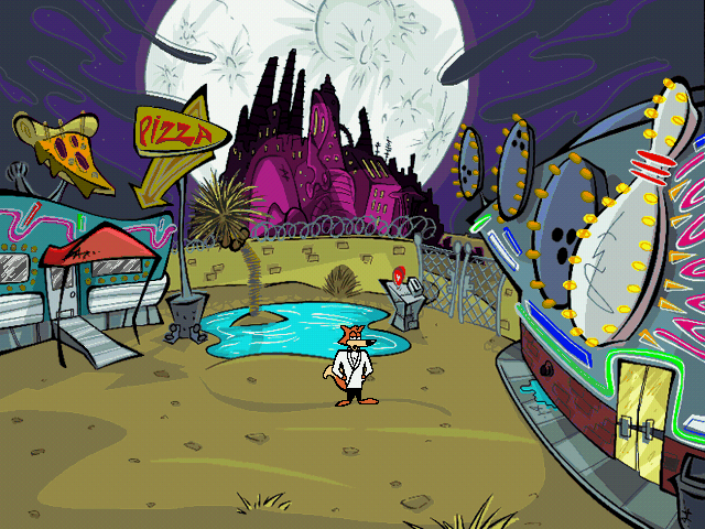 Геймплей — классический квест «point-and-click», где нужно исследовать локации, собирать предметы и решать заковыристые головоломки. Вот только Лис не из тех, кто торопится: анимации проигрываются неспешно, персонажи долго шутят перед тем, как отдать нужную вещь, а мини-игры (вроде сборки ракетного скейтборда) требуют вдумчивого подхода. Зато сколько удовольствия в мелочах: попробуйте пройти «сканер причёсок», подобрав парик под стиль дня, или приготовить пиццу с кактусами для спасения учёного!