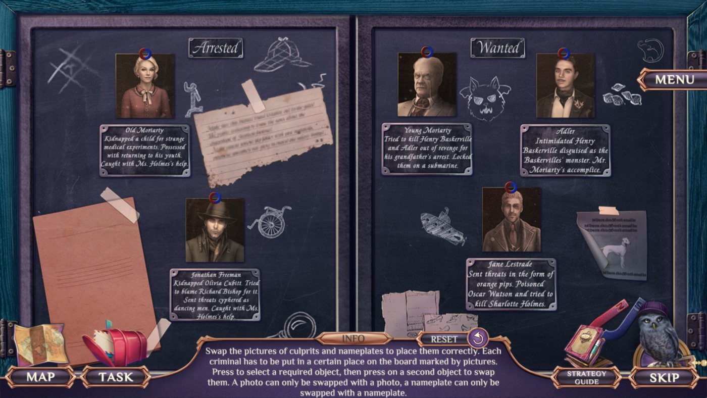 Игра предлагает насыщенный микс из поиска предметов, головоломок и захватывающих диалогов. Новый механик — система досье — позволяет анализировать улики, строить логические цепочки и разоблачать лжецов. Отыскивая скрытые объекты в атмосферных локациях (от роскошных особняков до мрачных переулков Лондона), вы постепенно приближаетесь к разгадке, которая может перевернуть историю семьи Холмс.