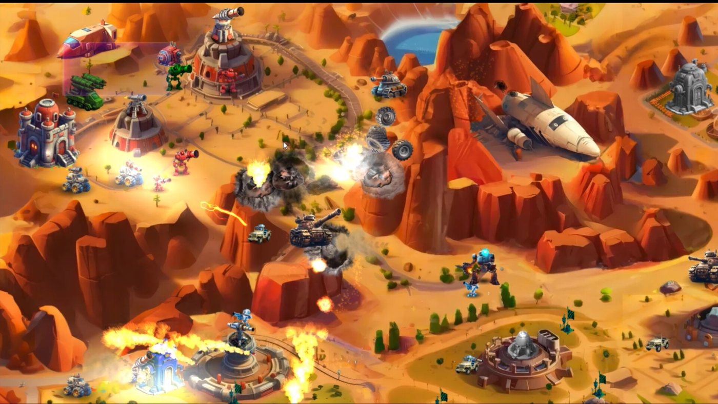 Nuke Them All – это стратегия в реальном времени, где вместо долгого строительства баз вас ждёт хаотичный блицкриг с ядерной кнопкой под рукой. Красные роботы против синих, флаги для захвата, орды зомби и внезапные атаки пришельцев – здесь нет времени на раскачку. Просто берите отряды, штурмуйте вражеские укрепления и копите ресурсы для главного козыря: той самой кнопки, которая стирает всё с лица карты.