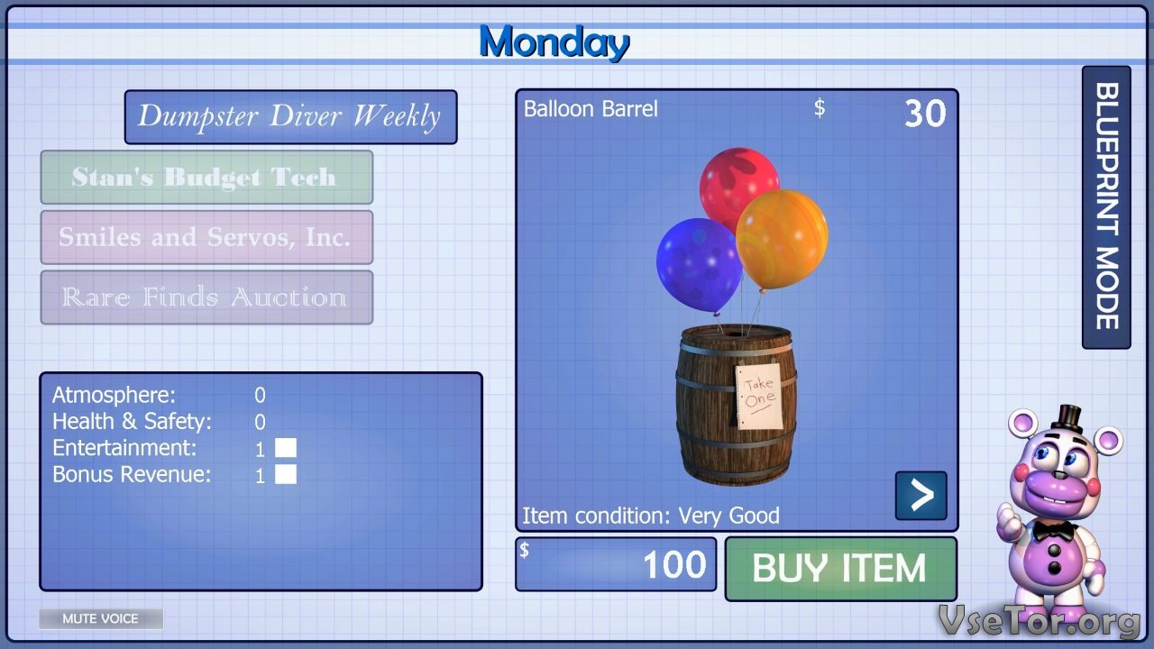 Есть тут и стандартный режим игры, в котором вам нужно будете переживать ночь за ночью. Избегая полноценного контакта со злыми аниматрониками. Здесь вам придется балансировать между шумом от вентилятора, привлекающим внимание аниматроников, и тишиной. В целом, игровой процесс такой же, как и в прошлых частях, за исключением лишь измененных условий и появления новых заданий, за которые игрок будет получать деньги, что можно потратить на различные предметы.