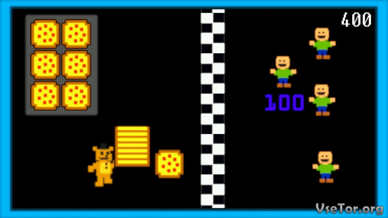 И первым делом в глаза бросается полностью переработанный интерфейс и игровой процесс. Теперь игра начинается не с предисловий, а с мини-игры в 8-битном стиле. На этом этапе игрок видит перед собой пиццерию и должен в роли Фредди разносить пиццу посетителям, а точнее метать ею в них таким образом, чтоб она не попала в руки Темного Фредди. За попадание пиццей в посетителей, игрок получает бонусы, которые позже можно будет потратить.