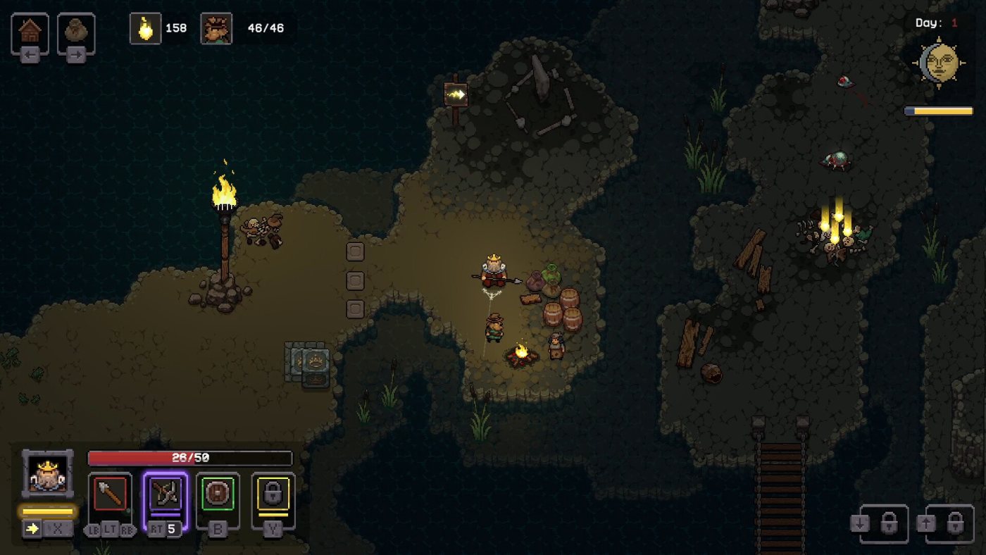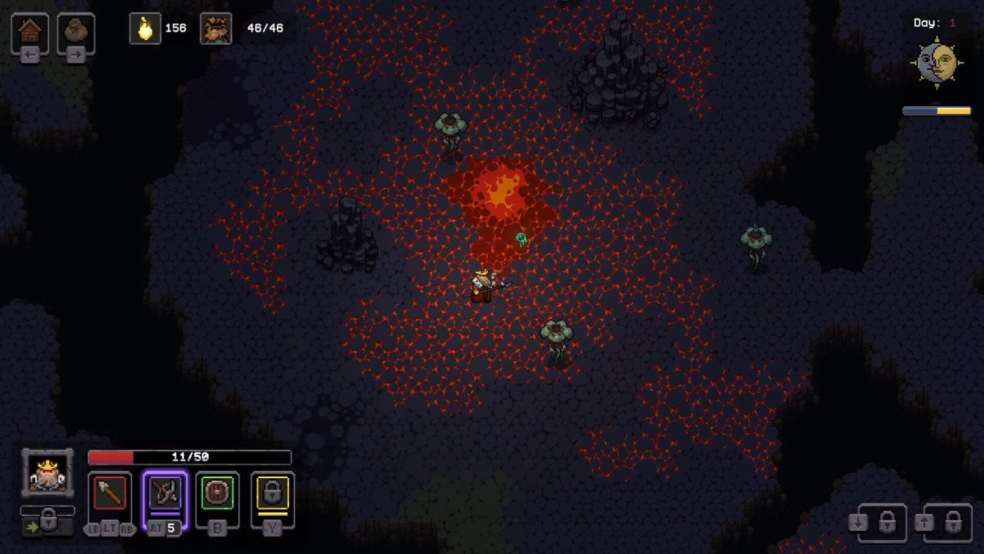 Где-то между «Zelda» и метроидванией игра выдаёт странный, но цепляющий коктейль. Однажды вы три часа бегаете за камнями, чтобы открыть новую локацию, а потом вдруг обнаруживаете, что пропустили карту – и всё это время блуждали вслепую. Бои тоже своеобразные: атаки привязаны к курсору, а у врагов три типа уязвимостей – костяные, древесные, слизистые. Спрятал скипетр, достал топор – и вот уже вчерашний кошмар рассыпается щепками.