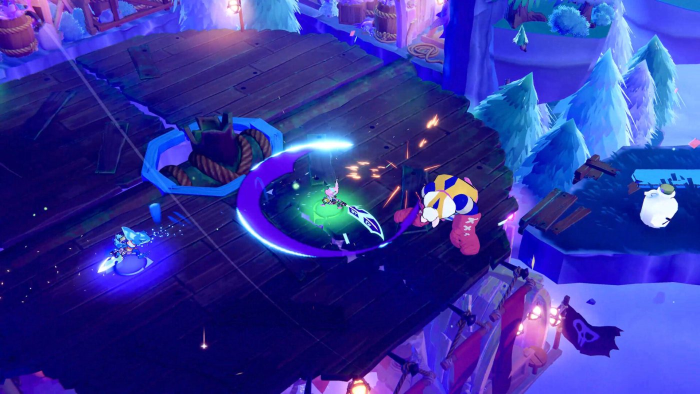 Начинаете с малого: хватаете клинок и летите вперёд по платформам. Вот вы сшибаете мелкого стража, подбираете кристалл, а потом меняете оружие на лук или молот — их больше десятка, и каждое бьёт по-своему. Биомов пять: от грибных лесов до ледяных пиков, и каждый раз карта новая — не заскучаете. Враги лезут толпами: мелочь вроде летающих шипов и боссы, такие как скорпион с ядовитым хвостом. Бои быстрые: промахнулись с рывком — и привет, начинайте заново. Но можно звать друзей — до трёх человек в коопе, и тогда шансы растут. Умираете, учитесь, возвращаетесь — классика рогаликов.