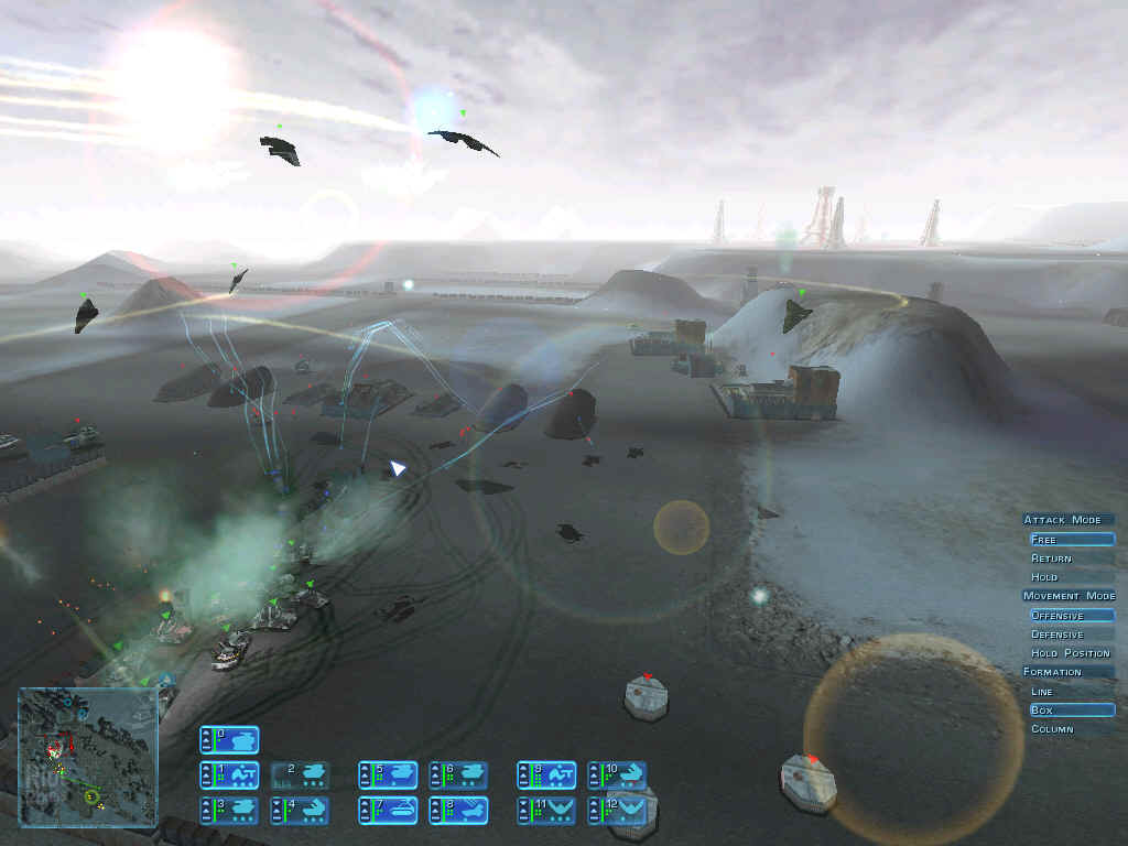 Графика в Ground Control впечатляет даже сегодня: детализированные юниты, реалистичные следы от гусениц, динамическое освещение и кинематографичные взрывы создают потрясающую атмосферу боя. Камера позволяет как отдалить обзор до классического top-down, так и вплотную рассмотреть столкновения, где каждый солдат и машина анимированы с поразительной точностью. А разнообразие миссий — от обороны узкого ущелья до стремительных рейдов за линию фронта — не даст заскучать.
